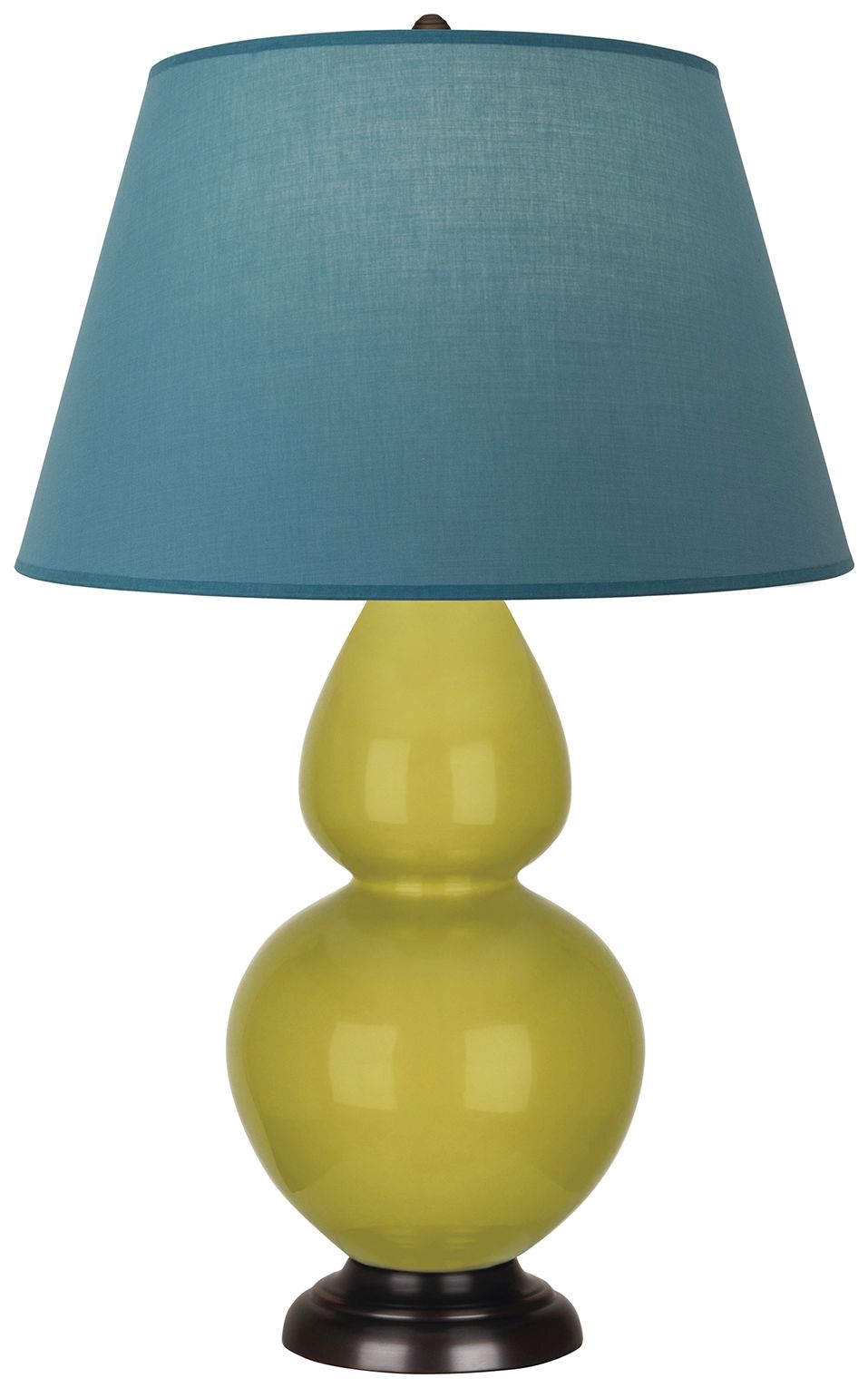 Double Gourd 31"H Citron And Bronze Lamp w/ Bright Blue And Gray Shade