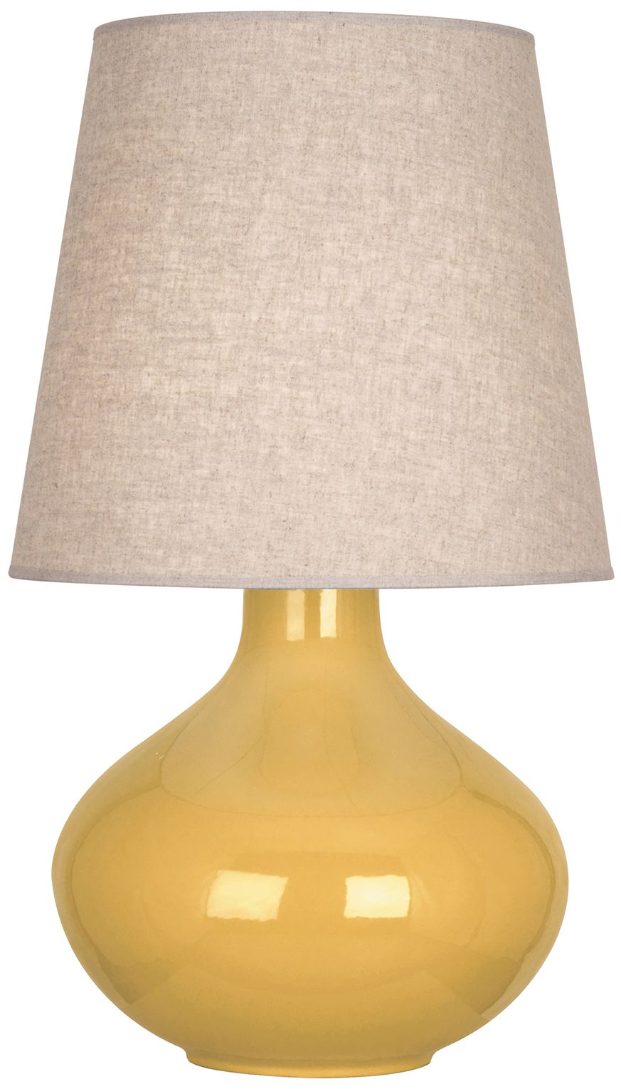 June 30.75" High Yellow Table Lamp With Cream Shade