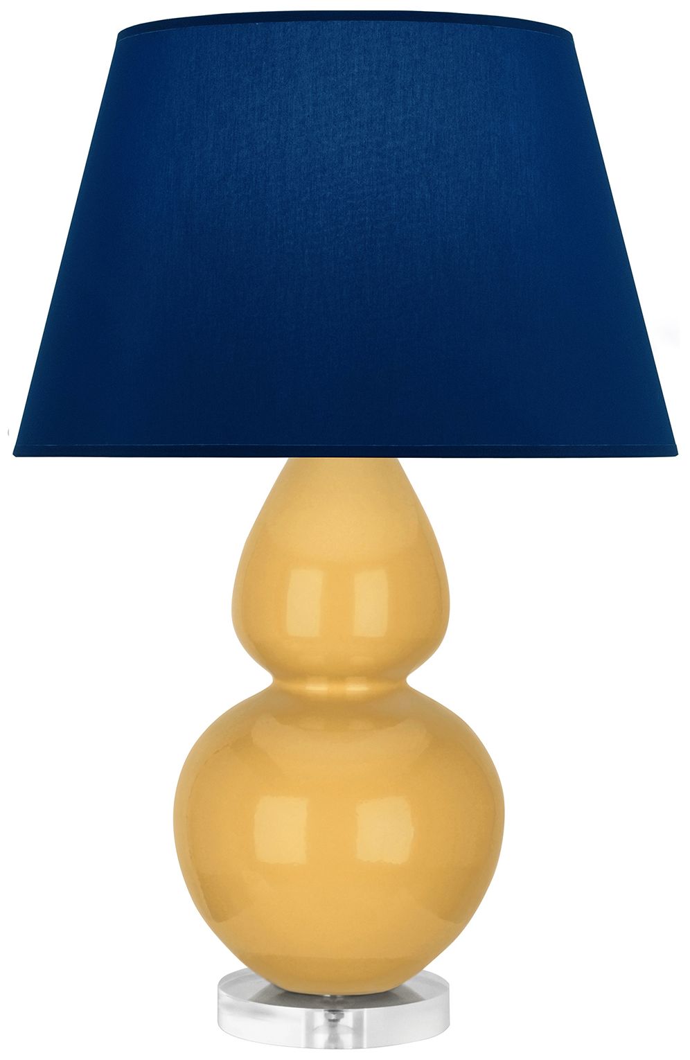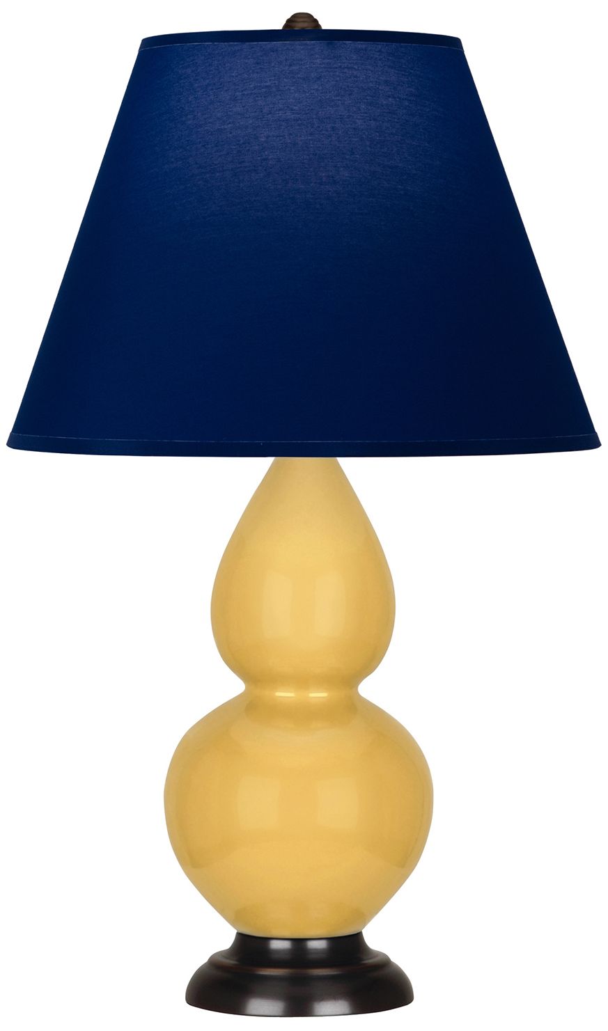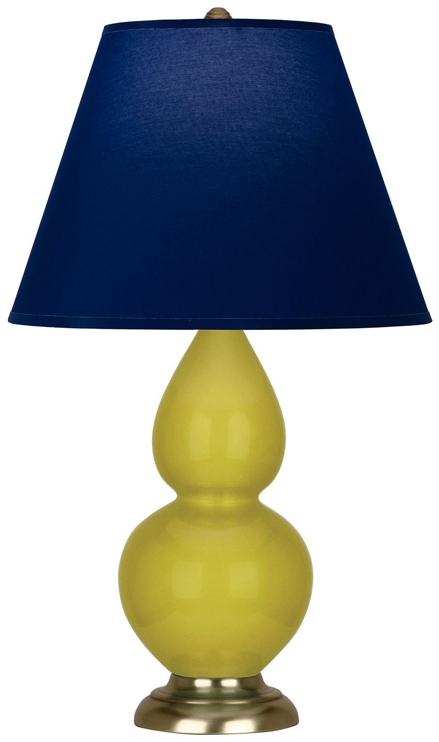 Double Gourd 22.75"H Citron And Brass Lamp w/ Navy And Gray Shade