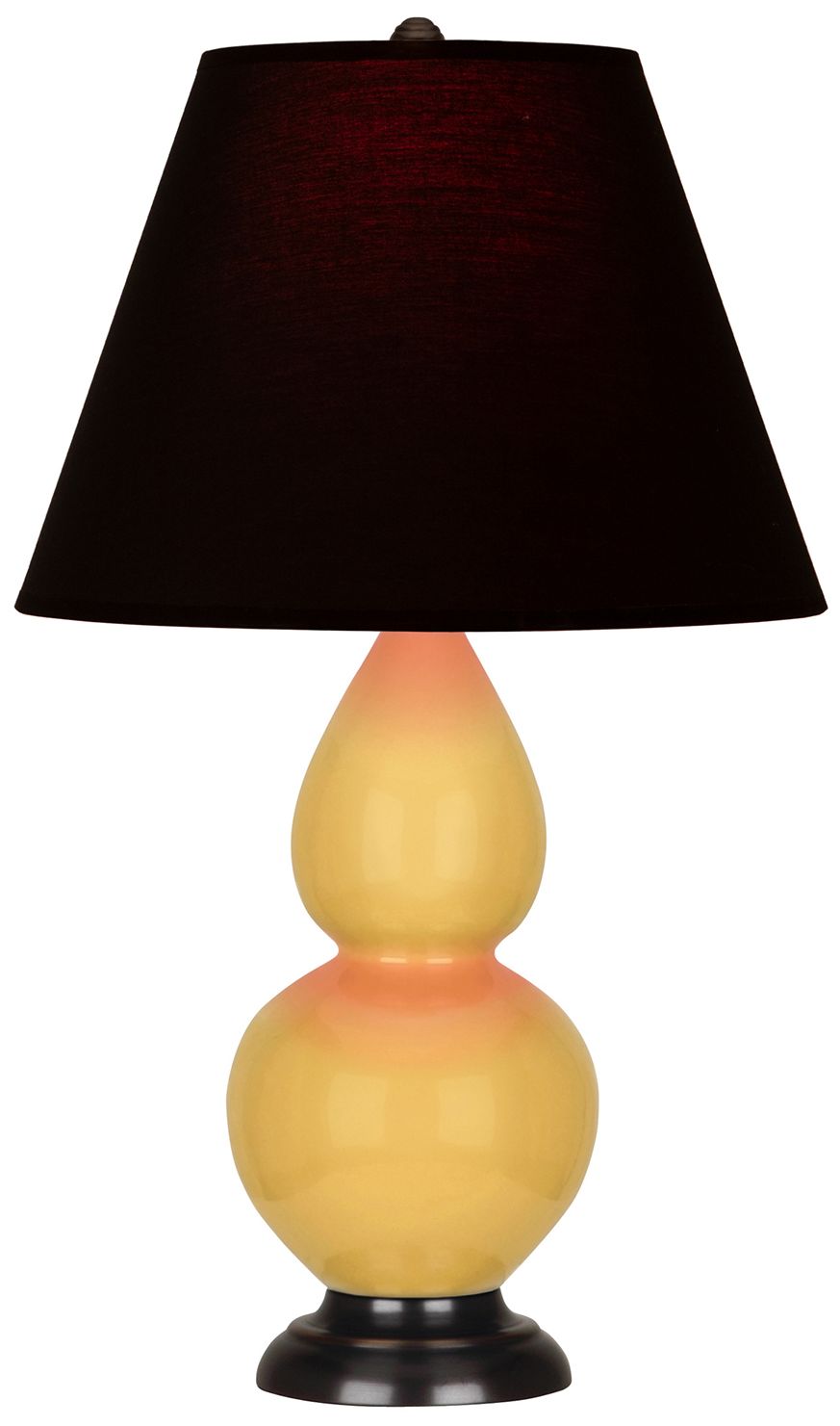 Double Gourd 22.75"H Citron And Bronze Lamp w/ Ink And Rose Shade