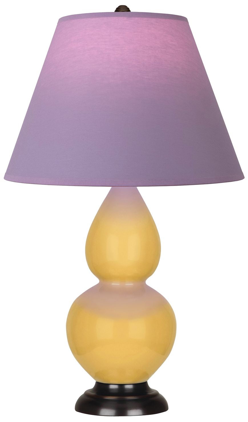 Double Gourd 22"H Citron And Lucite Lamp w/ Plum And Lavender Shade