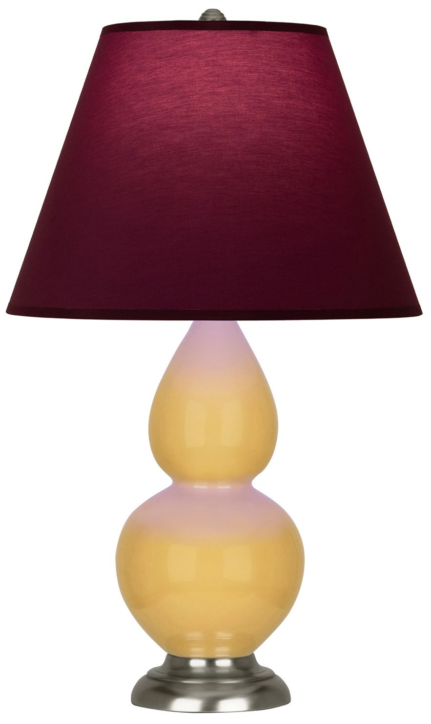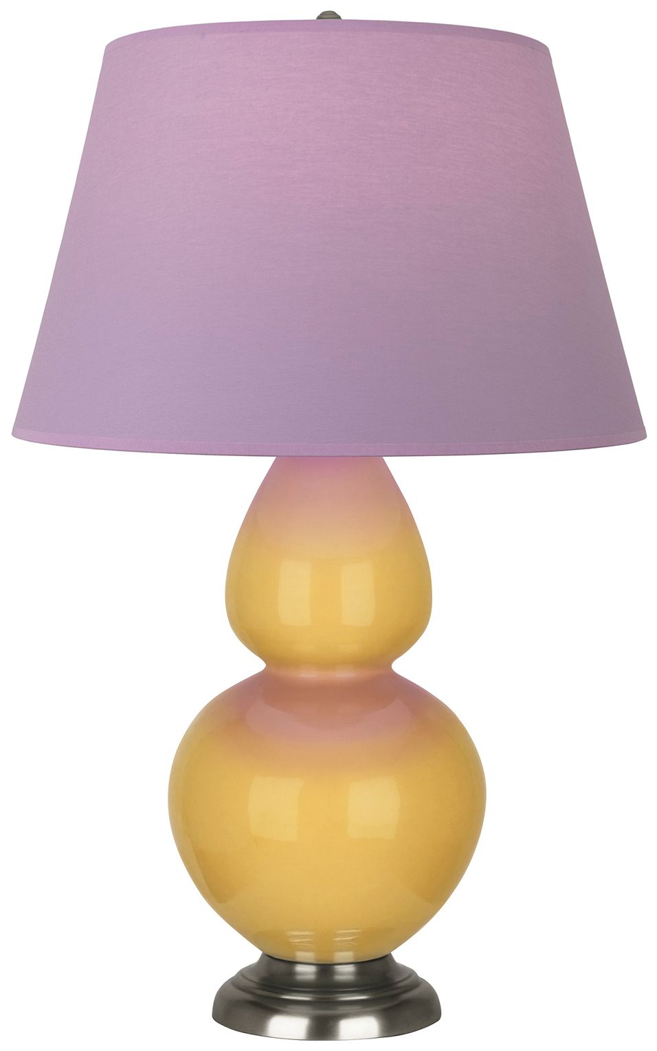 Double Gourd 31"H Yellow And Silver Lamp w/ Lavender And Plum Shade