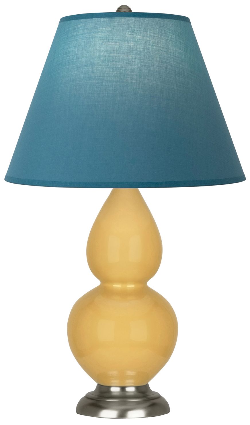 Double Gourd 30"H Citron And Lucite Lamp w/ Bright Blue And Gray Shade