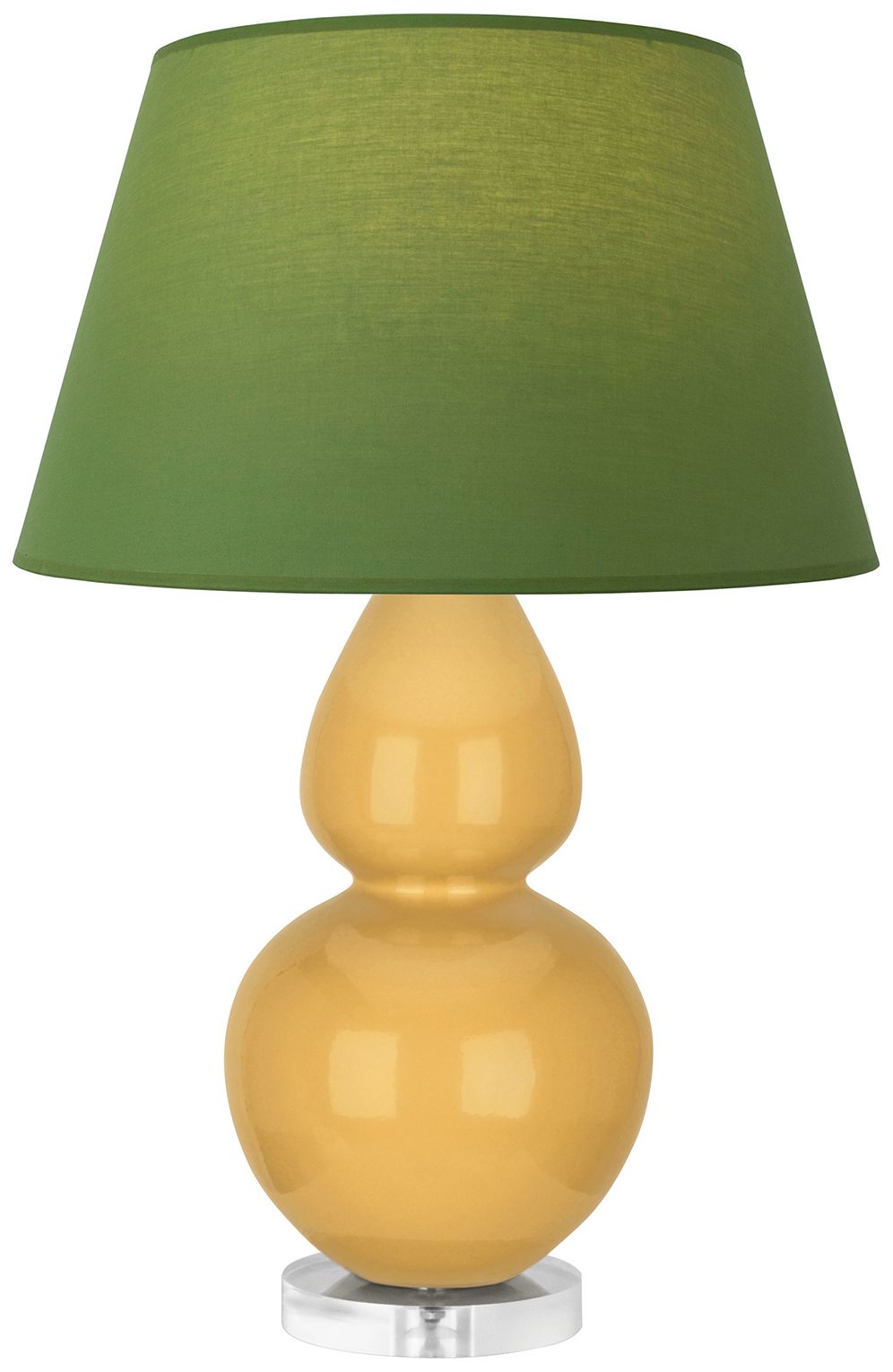 Double Gourd 30"H Yellow And Lucite Lamp w/ Tea Green And Taupe Shade