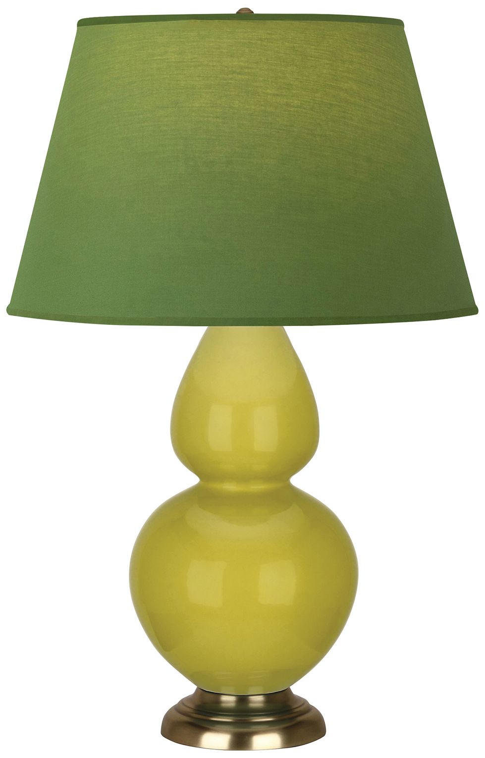 Double Gourd 31"H Citron And Brass Lamp w/ Tea Green And Taupe Shade
