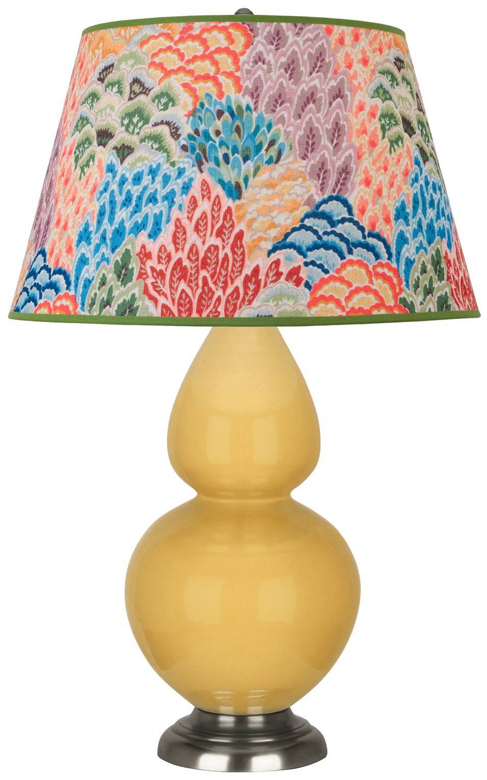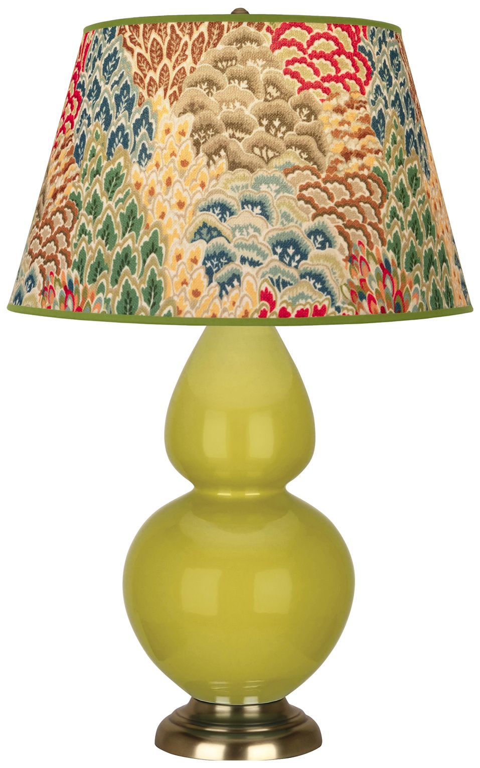 Double Gourd 31"H Citron And Brass Table Lamp w/ Fall Floral Shade