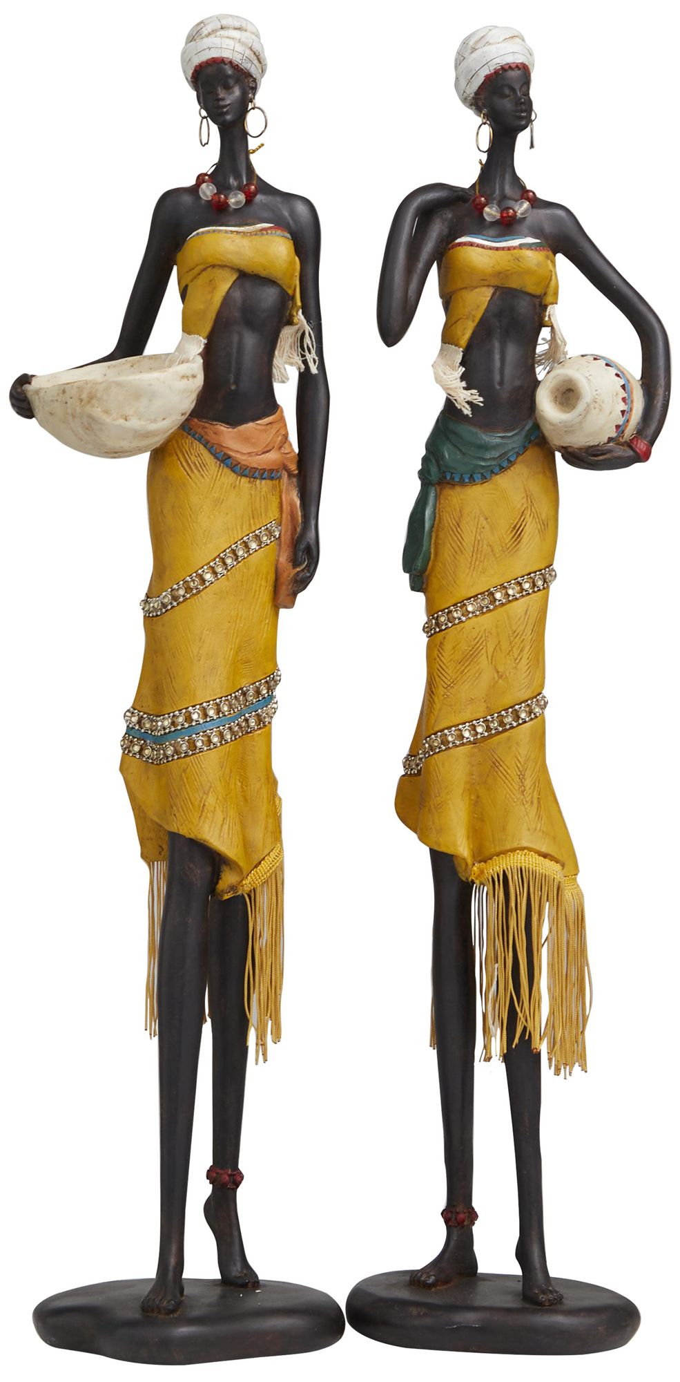 Yellow Polyresin Eclectic Sculpture, S/2 6"W, 24"H