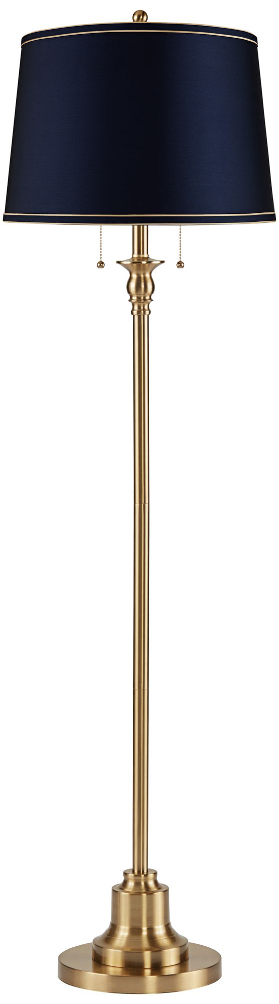 Dyna 58" High Antique Brass and Navy Drum Shade 2-Light Floor Lamp