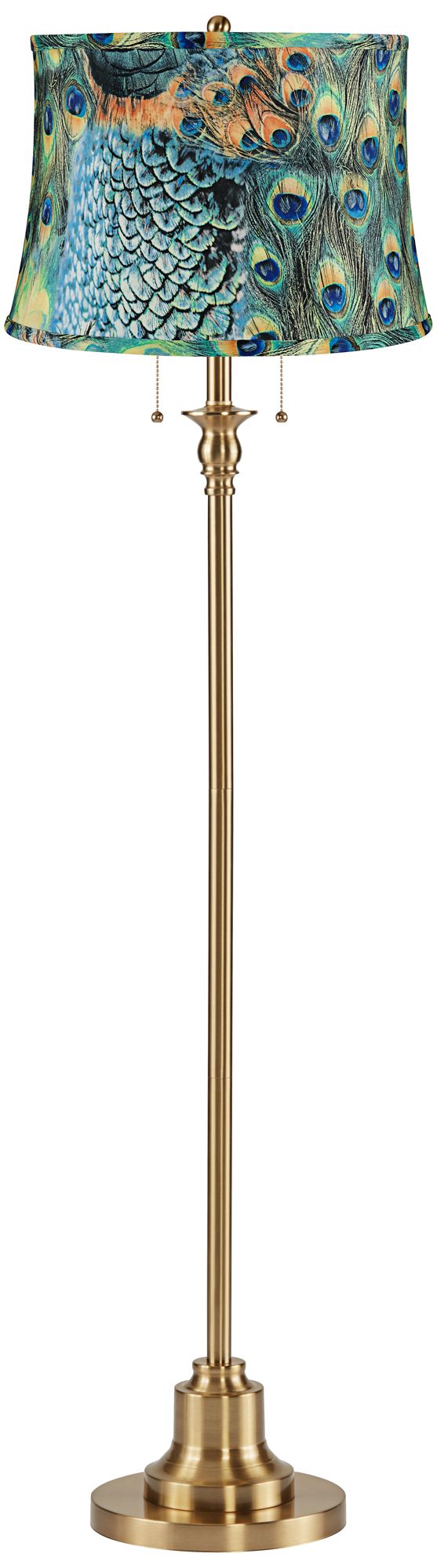 Dyna 58" High Antique Brass and Peacock Drum Shade 2-Light Floor Lamp