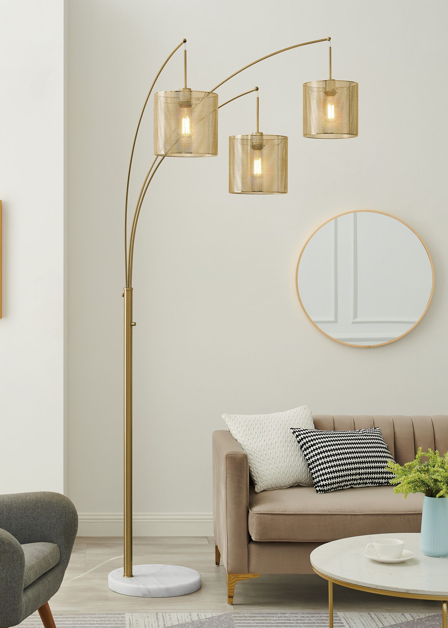 Lite Source Cora 91" High 3-Light Brushed Gold Large Arc Floor Lamp