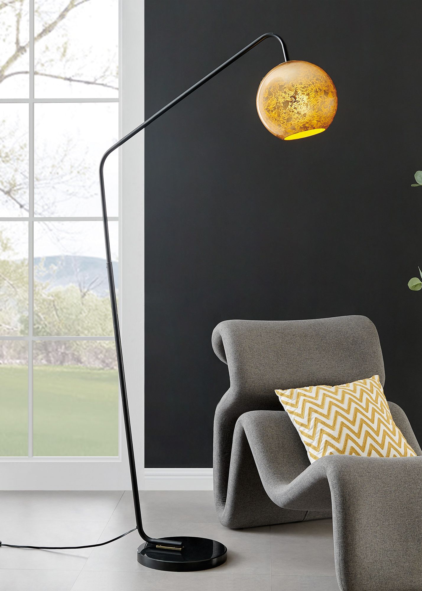 Lite Source Stein 89" High Black Finish Modern Arc Floor Lamp