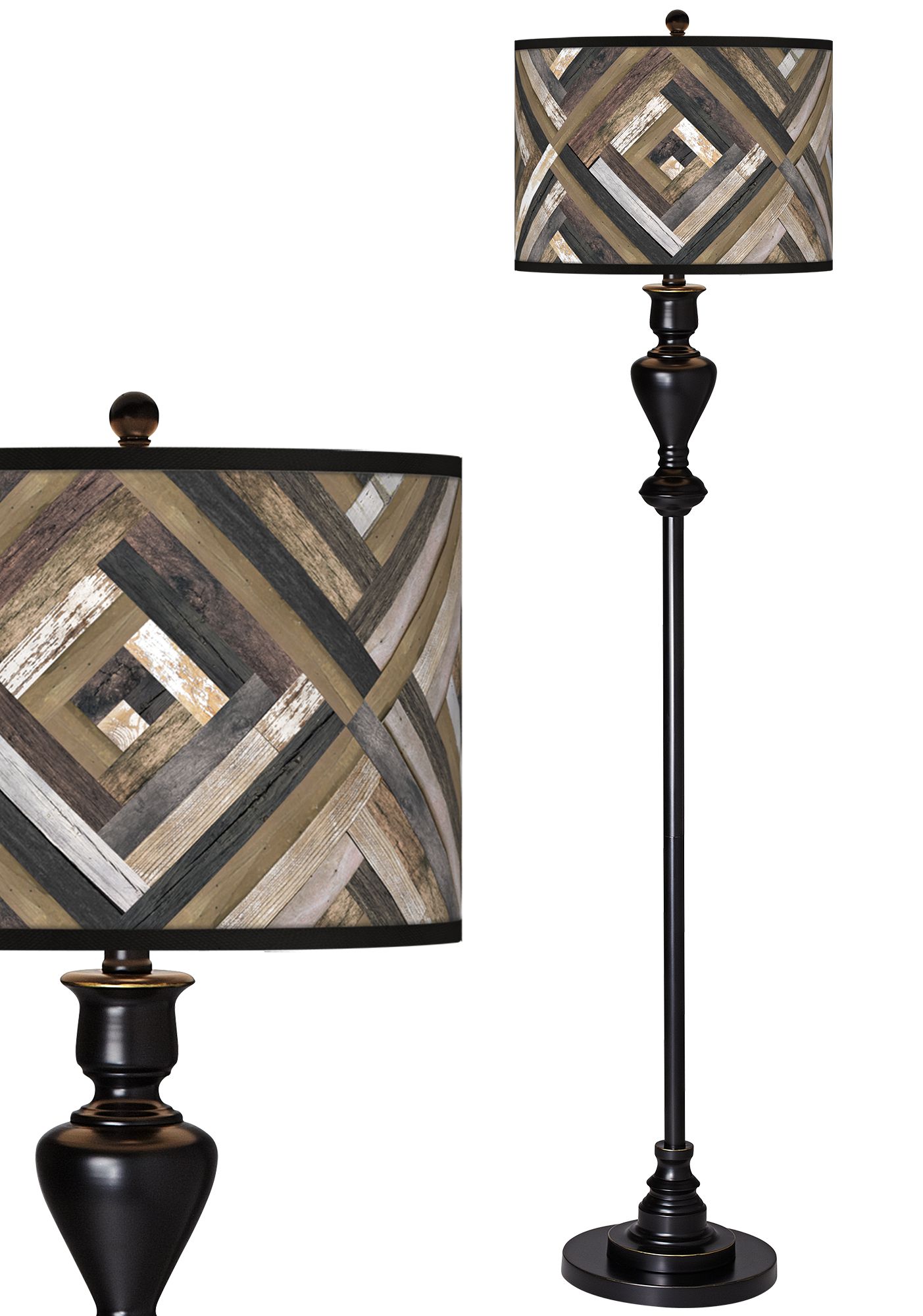 Giclee Glow 58" Rustic Woodwork Shade Black Bronze Floor Lamp