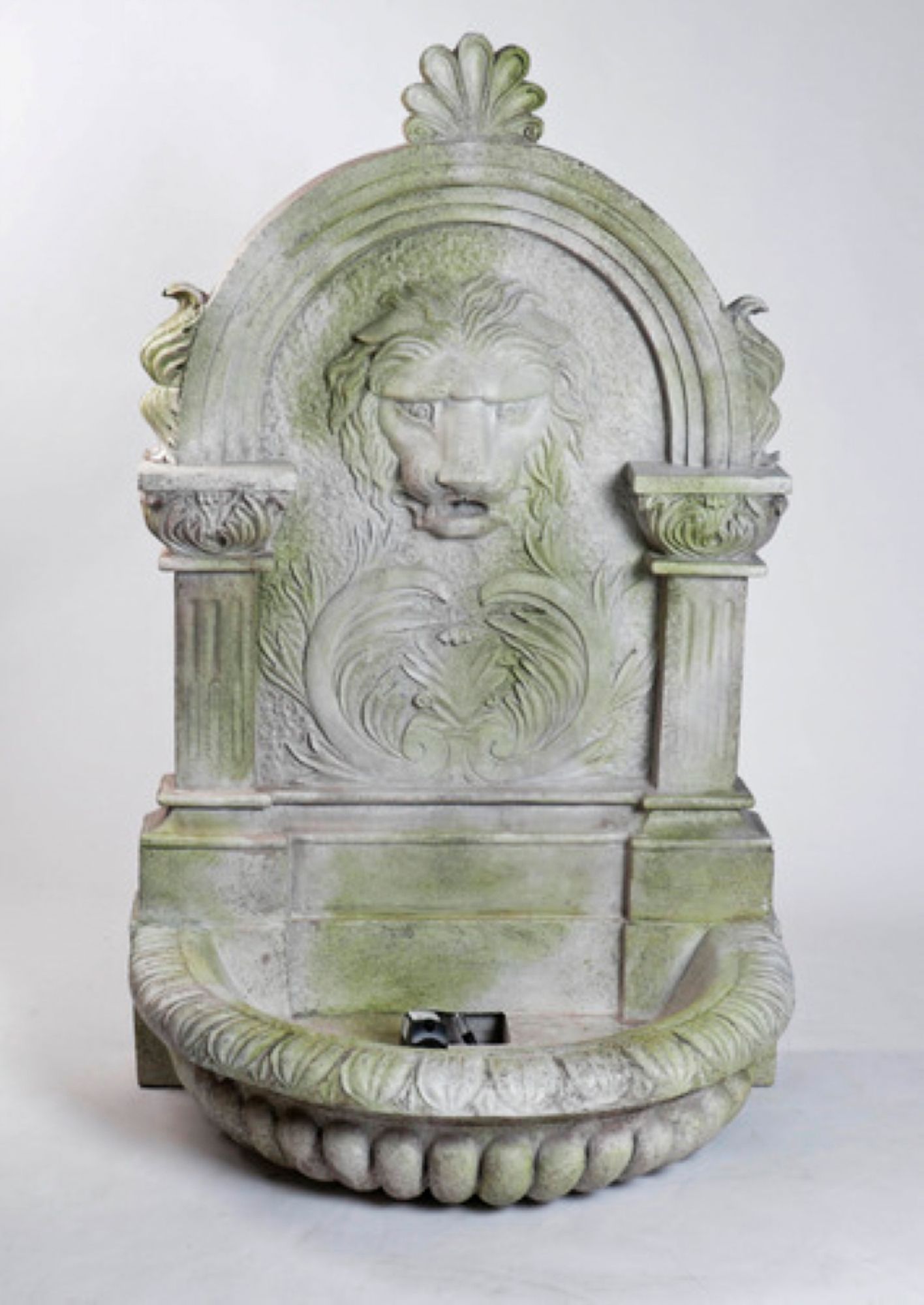 Orlandi Aged Lion 24"H Antique Stone Outdoor Wall Fountain