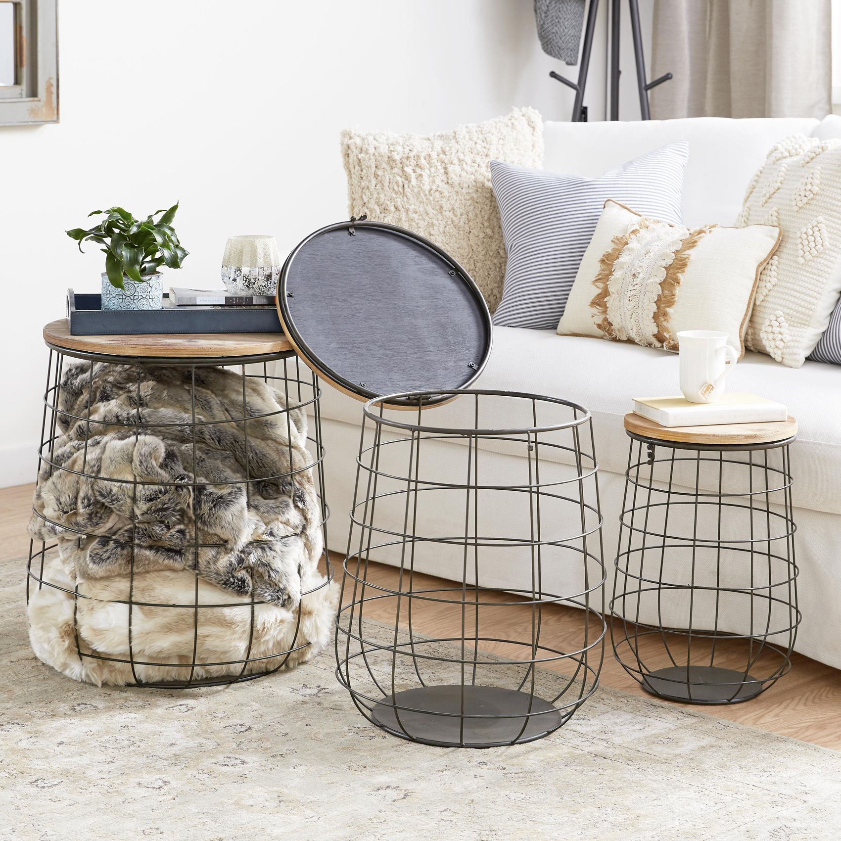 Black Metal Farmhouse Storage Basket, S/3 18", 20", 23"H