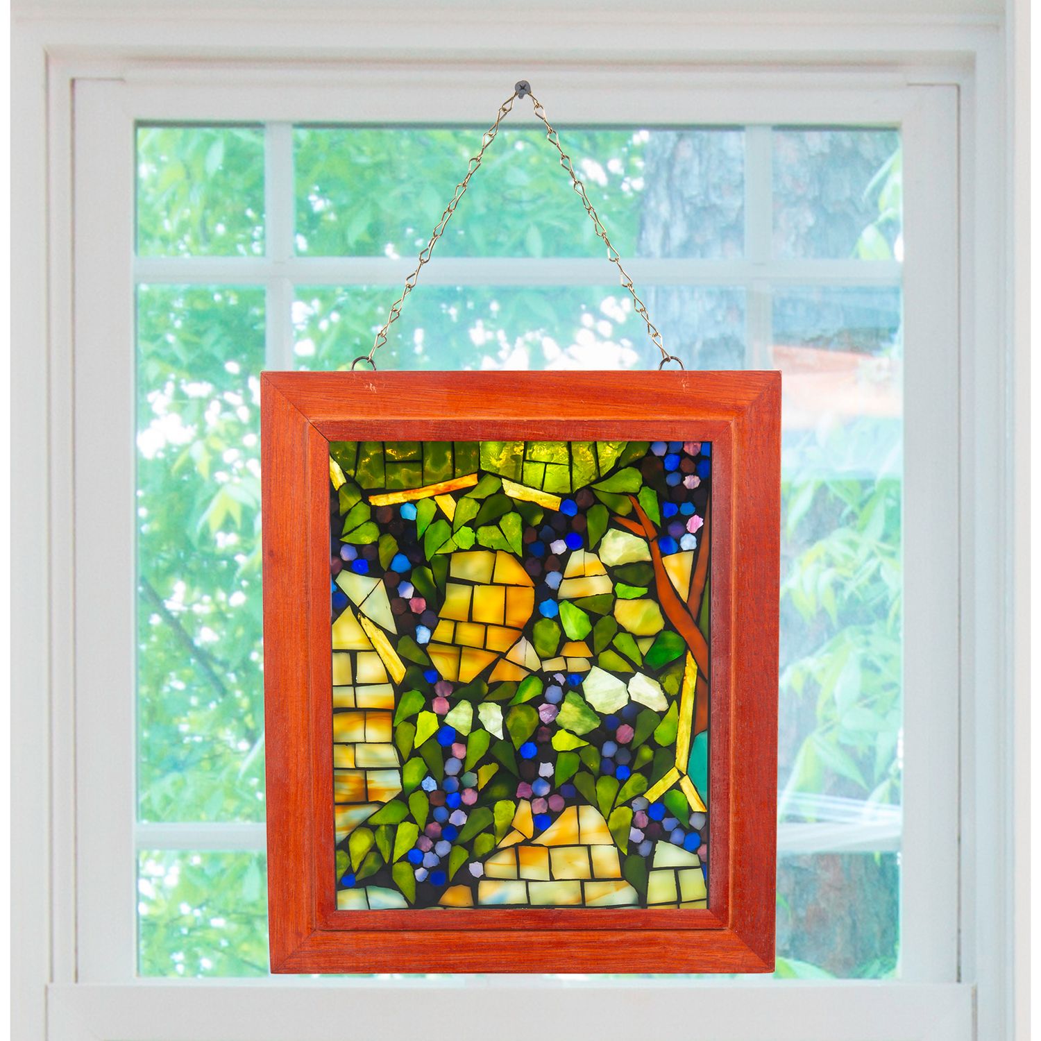 Dale Tiffany 10" Tall Grapevine Mosaic Art Glass Wall Decor / Suncatcher