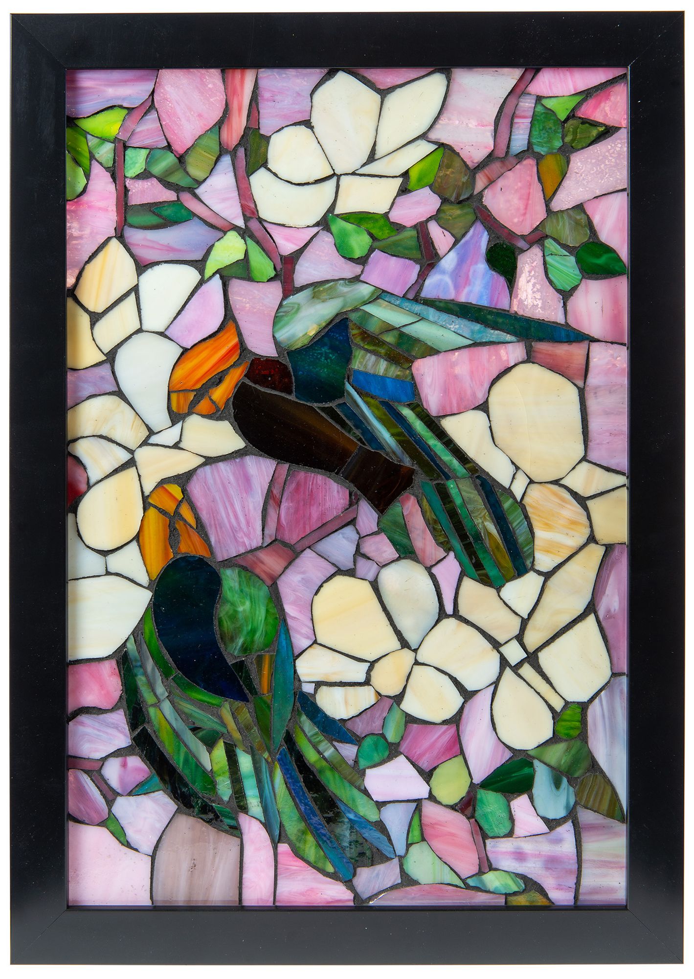 Dale Tiffany 18" Tall Parrots Mosaic Art Glass Wall Decor / Suncatcher