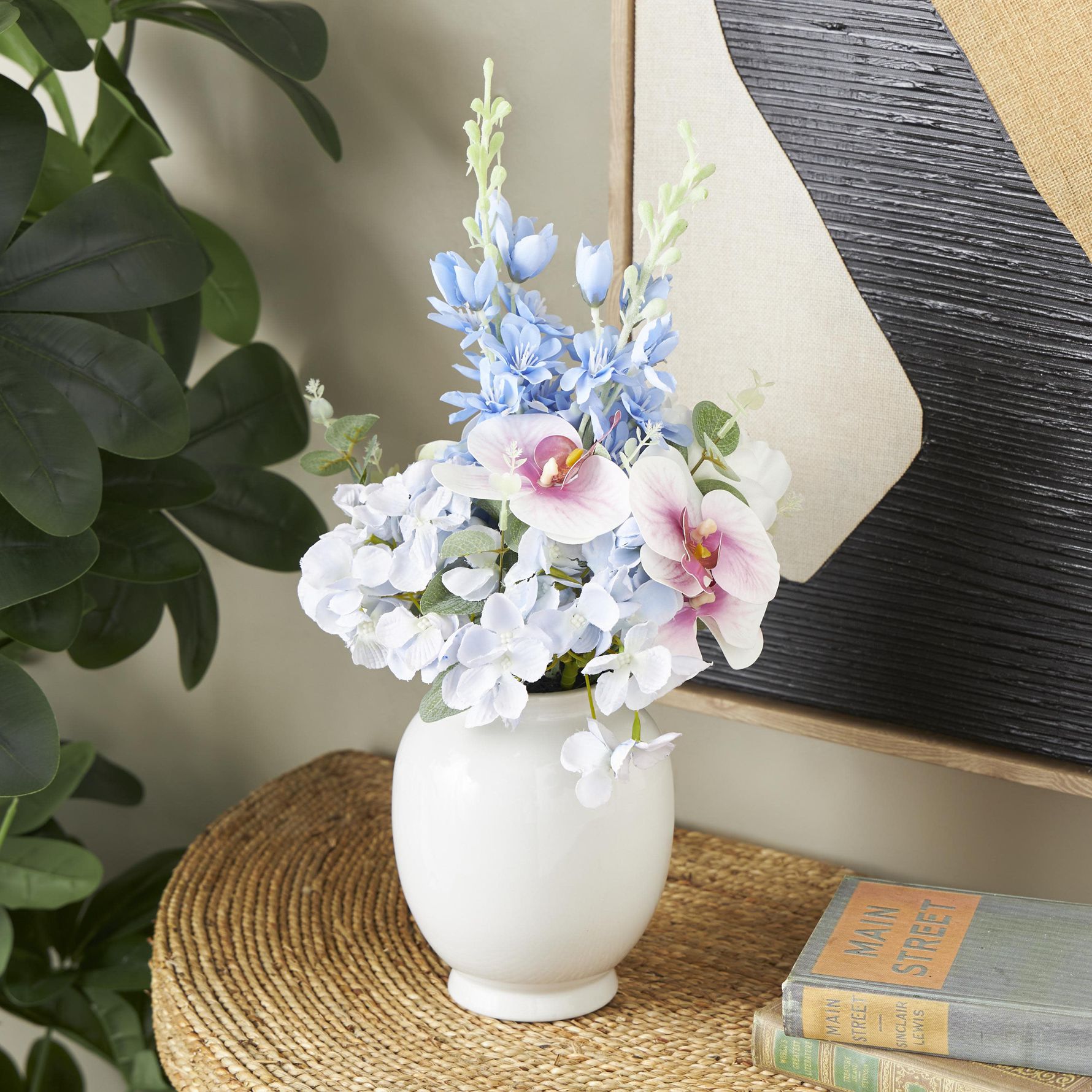 White Fabric Modern Artificial Flower, 10" x 10" x 18"