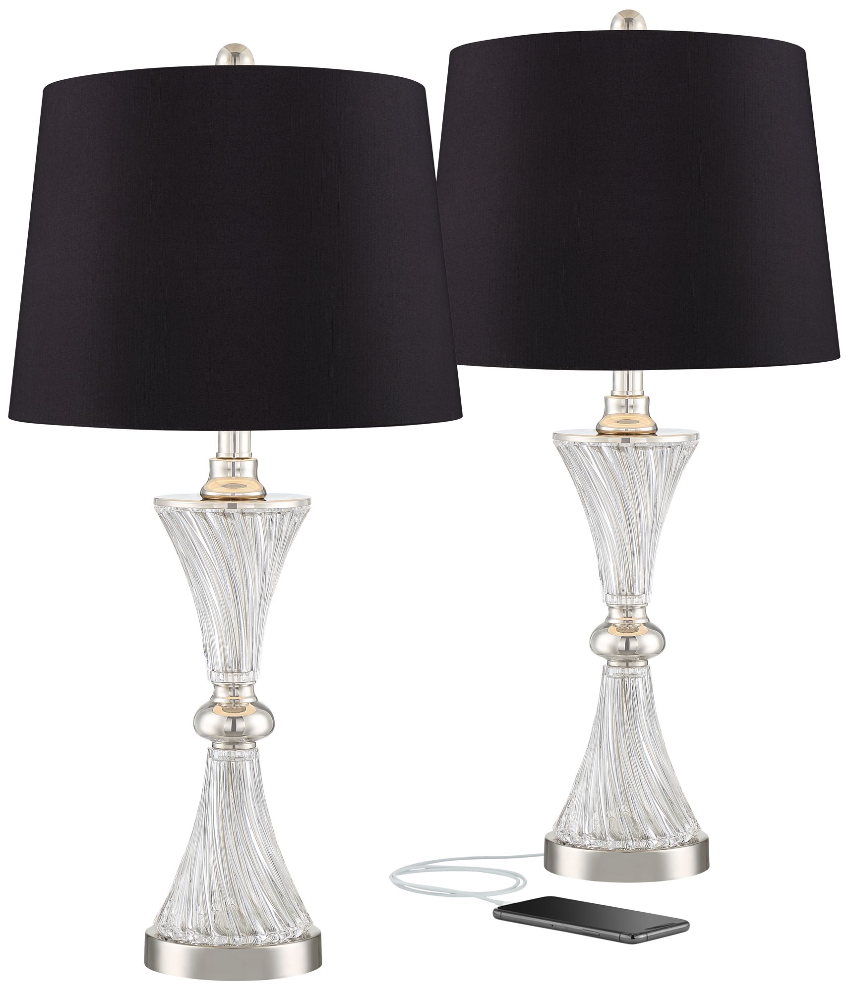 Copeland Chrome Glass Black Shade Table Lamps with USB Port Set of 2