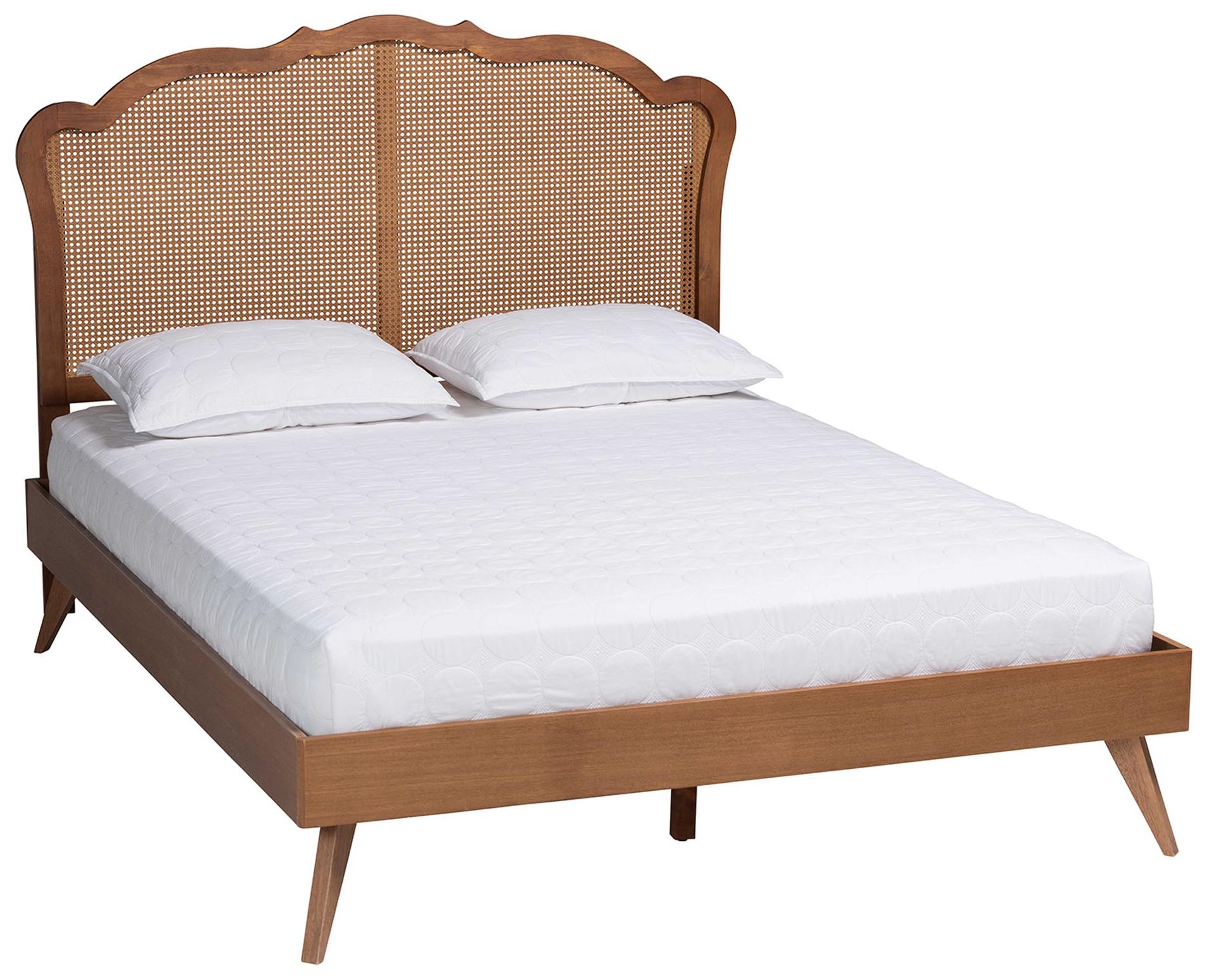 Baxton Studio Aithan Mid-Century Wood and Rattan Queen Size Platform Bed