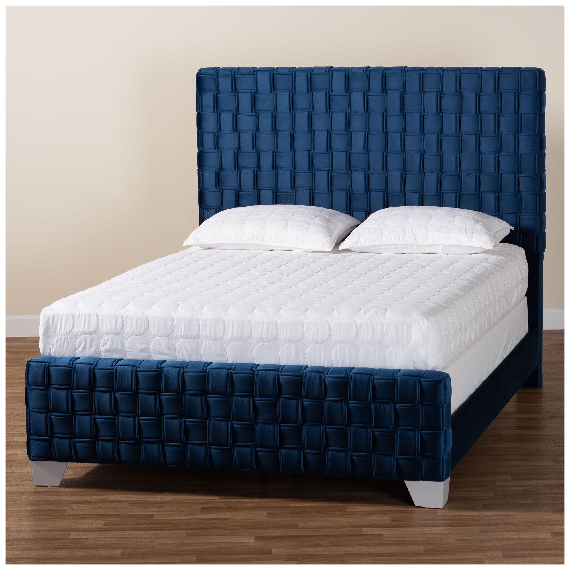 Baxton Studio Emlyn Glam Navy Blue Velvet Fabric Queen Size Panel Bed