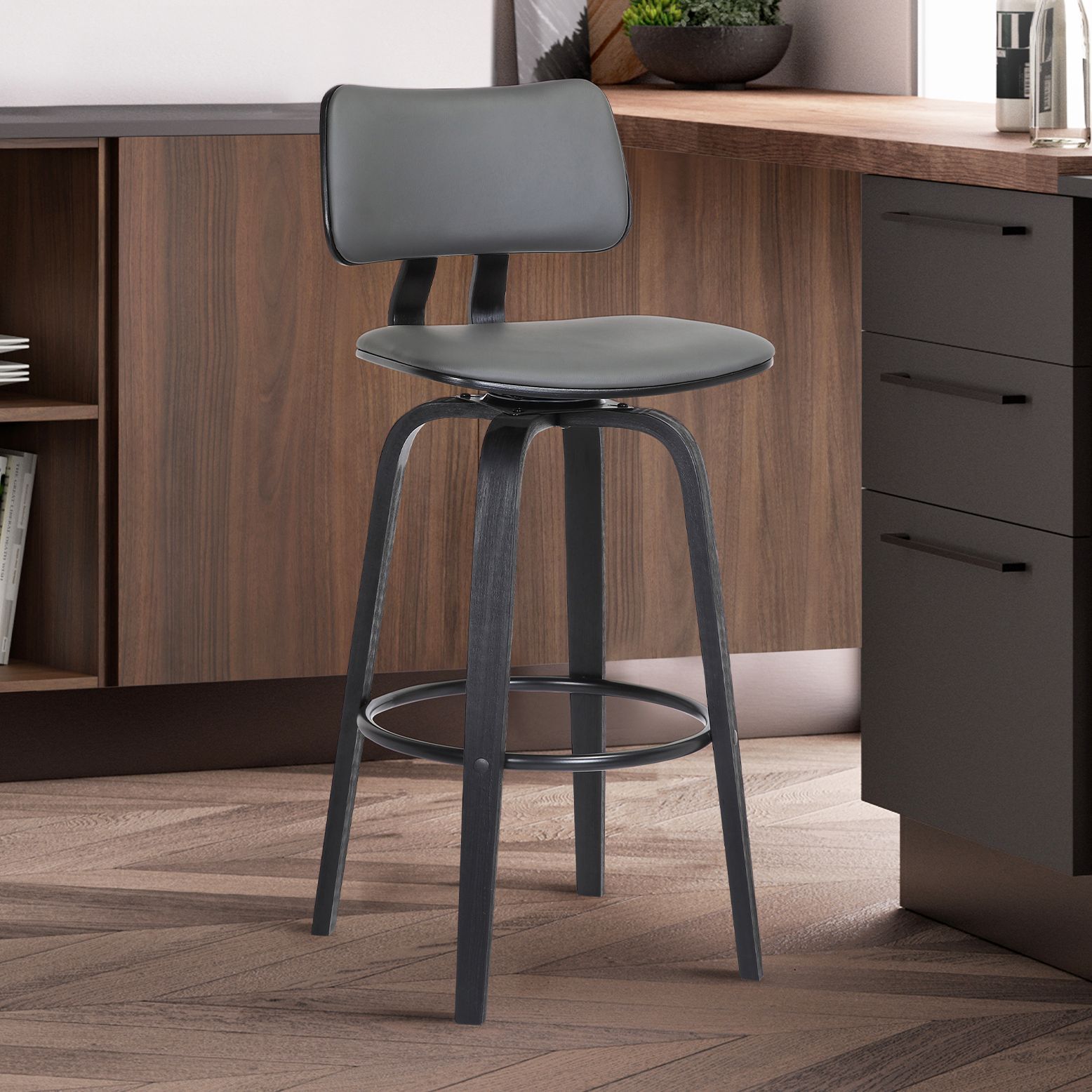 Baylor 30 1/2" Gray Faux Leather Black Wood Swivel Bar Stool