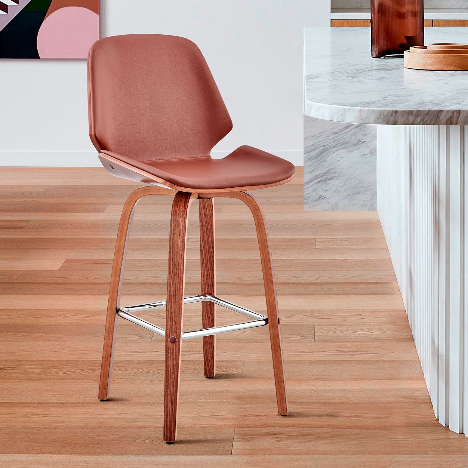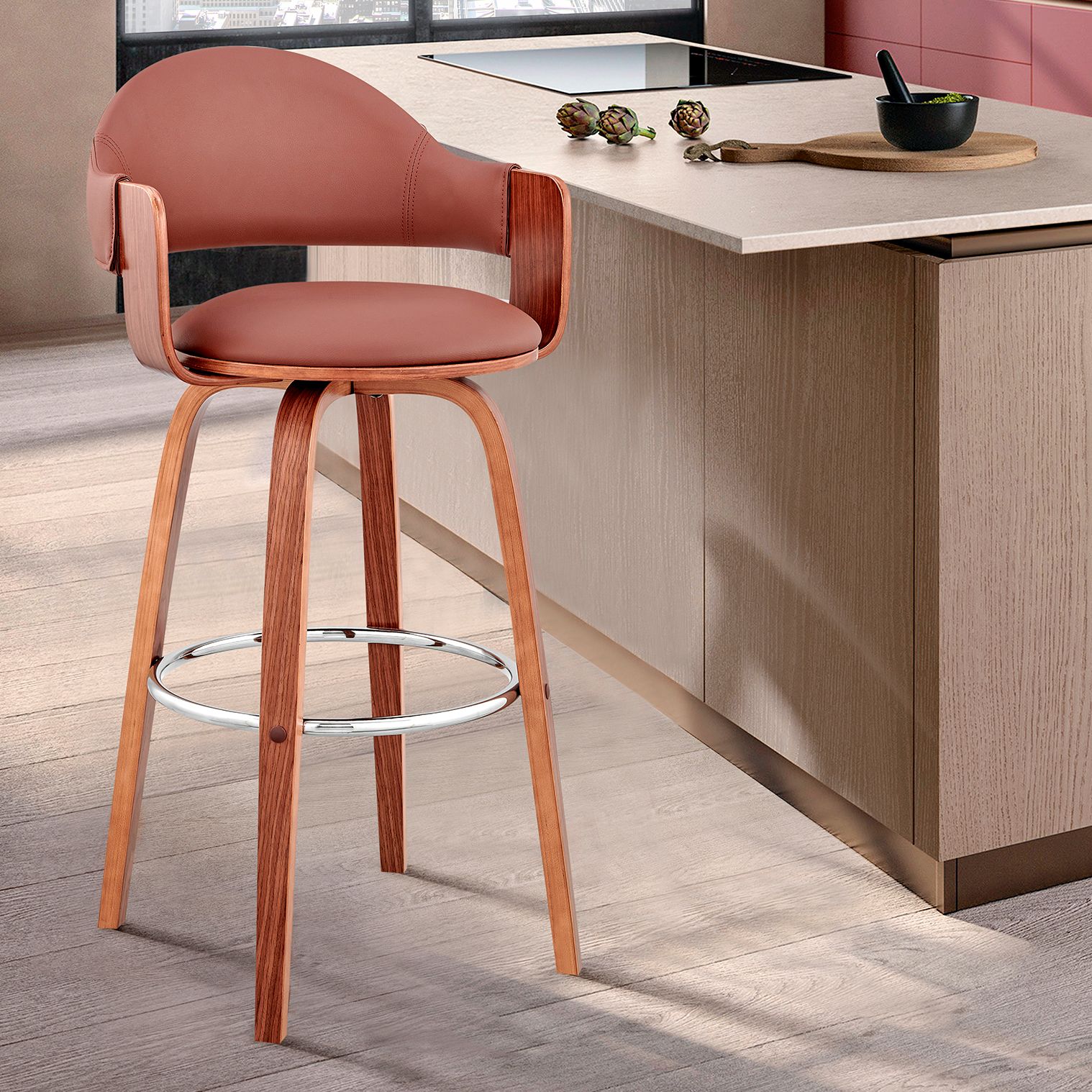 Arabela 26 in. Swivel Barstool in Walnut Finish with Brown Faux Leather