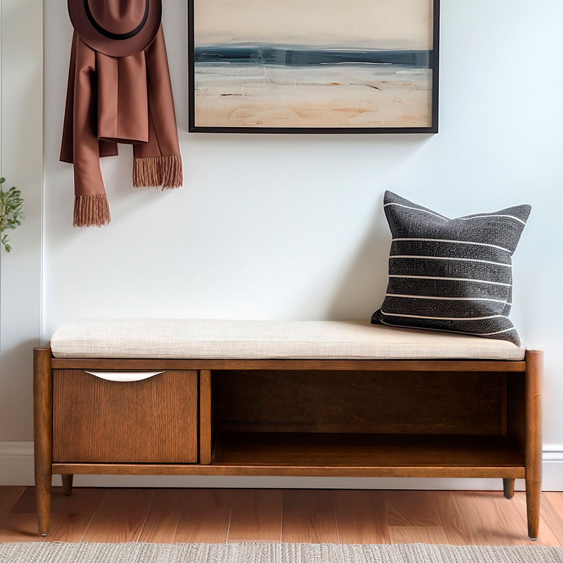 INK+IVY Walnut Brown Arcadia Accent Bench with Storage and Cushion