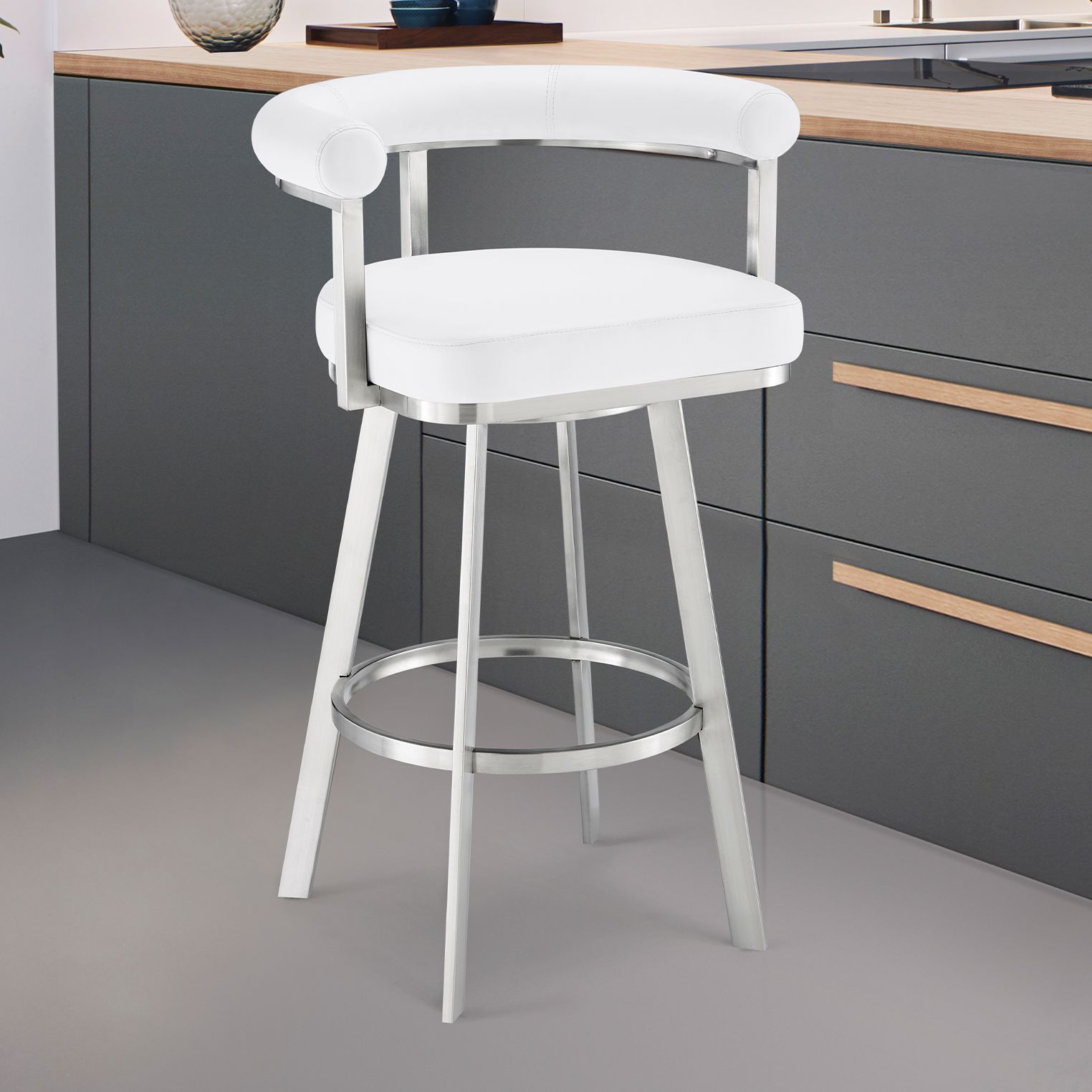 Magnolia 30 in. Swivel Barstool in White Faux Leather, Stainless Steel
