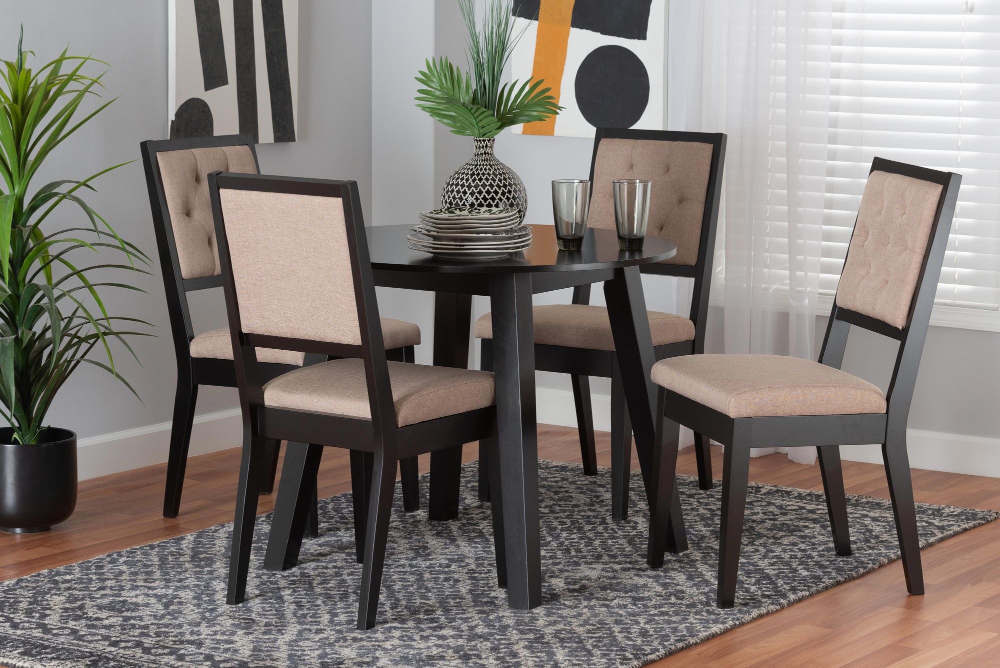 Sadie Espresso Brown Wood Beige Fabric 5-Piece Dining Set