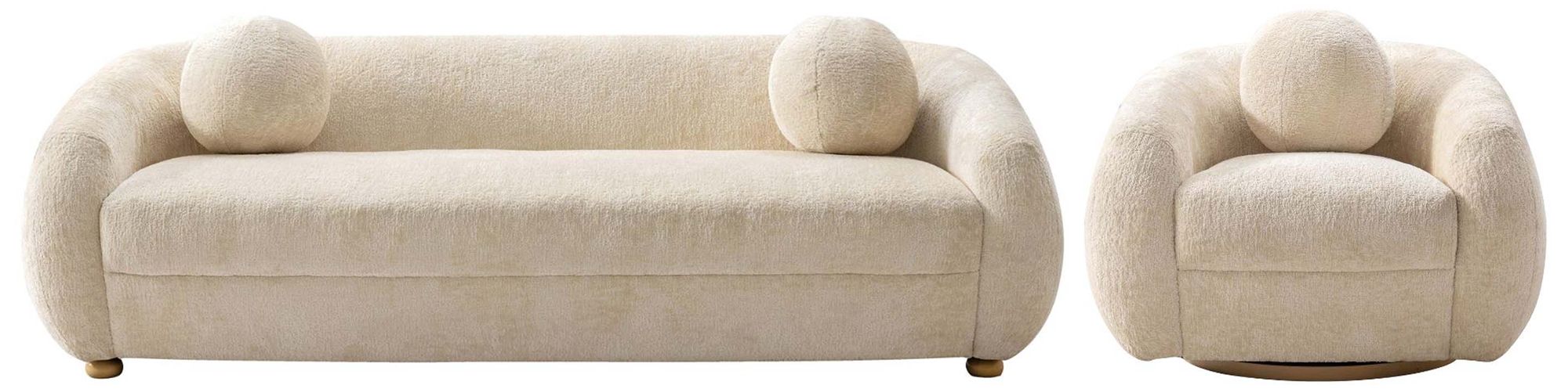 2- Piece Modern Tribeca Chenille 85.8" Sofa and Accent Chair in Cream