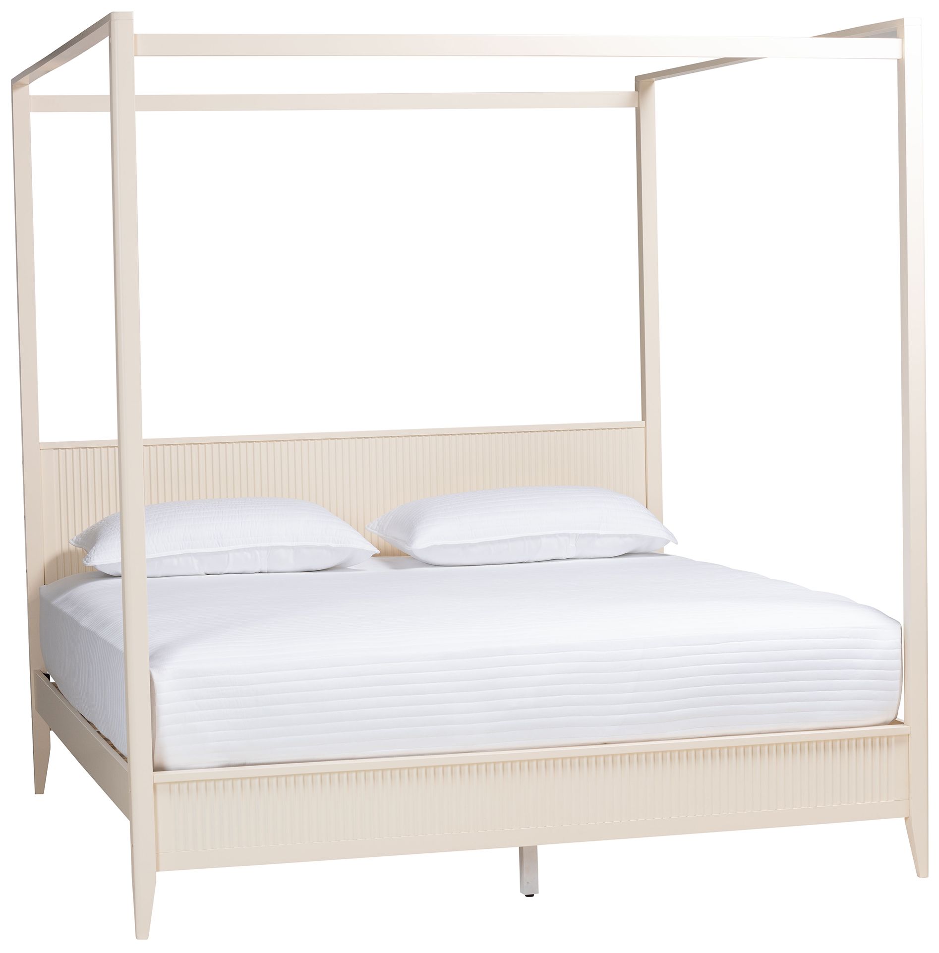 Baxton Studio Primrose Mid-Century Ivory Fluted Wood King Size Canopy Bed