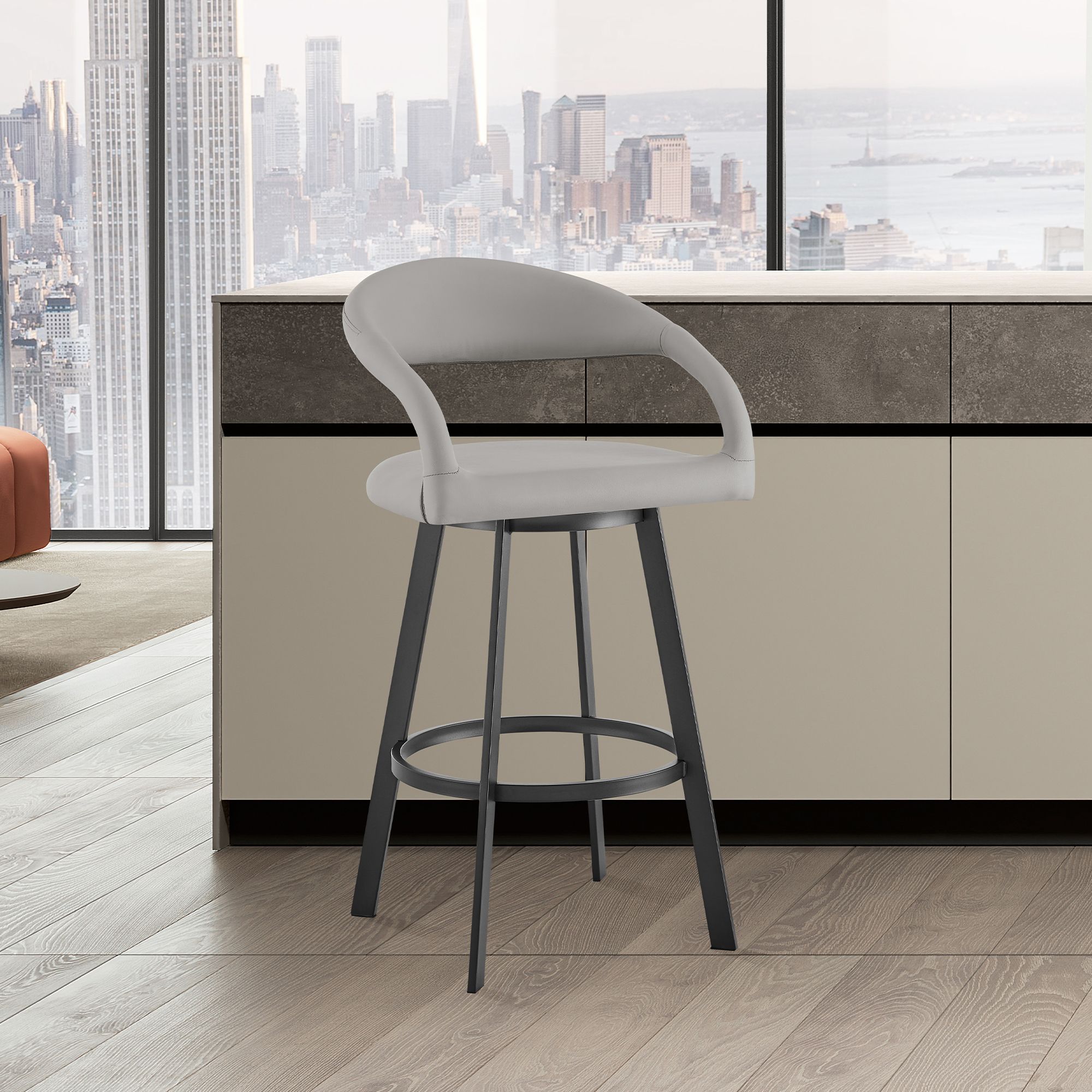 Tyler 30 in. Swivel Barstool in Grey Faux Leather and Black Wood