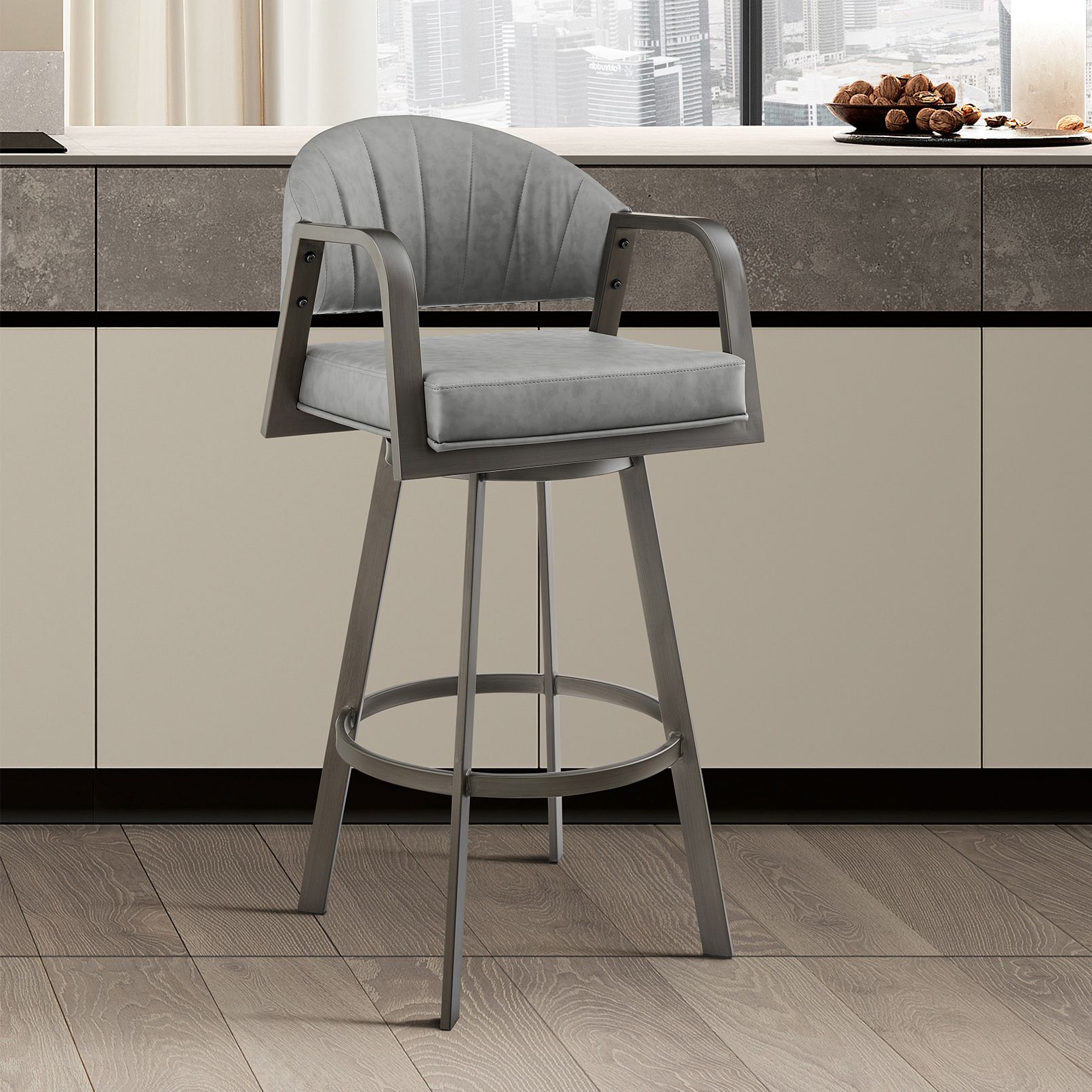 Marcie 30 in. Swivel Bar Stool in Metal and Vintage Gray Faux Leather