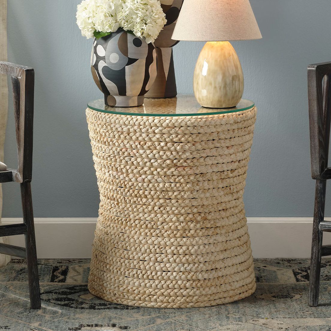 Equus 22"W Sterling Chestnut Straps Platinum Ring Side Table