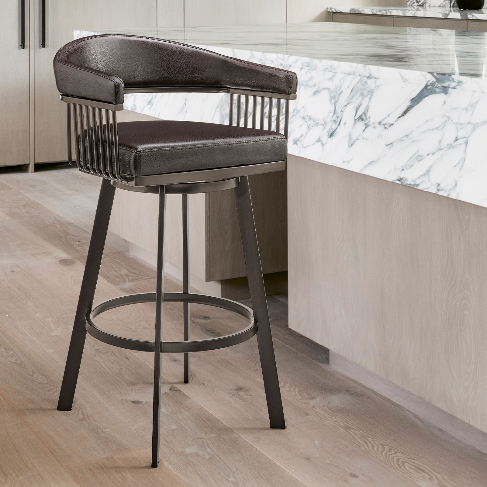 Armen Living Madrid 30" Ford Brown Faux Leather Swivel Bar Stool