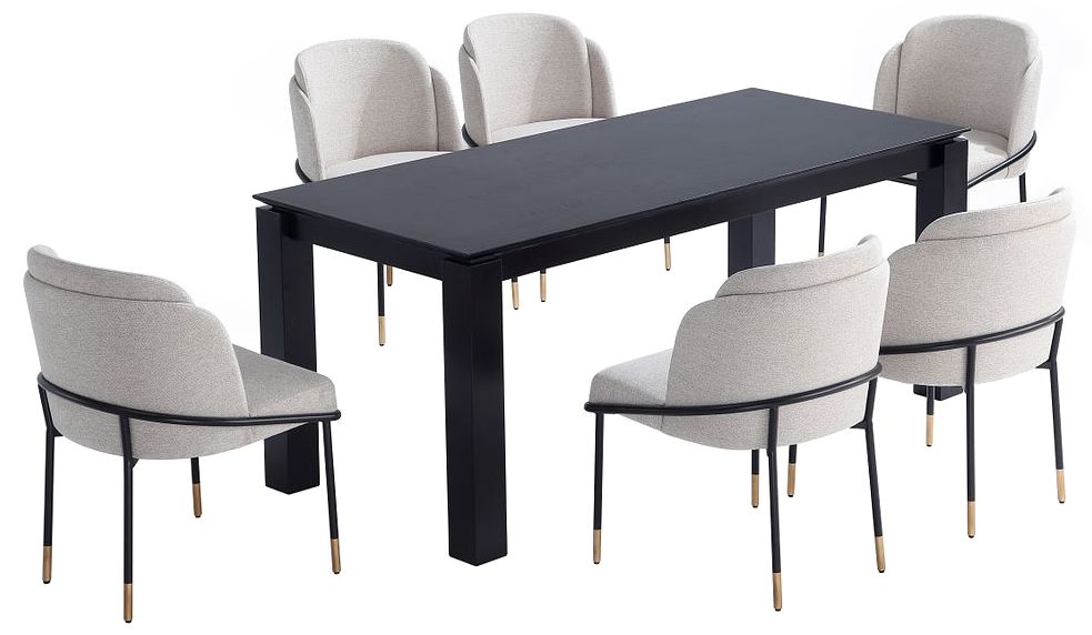 7pc Rockaway 70.86 Dining Set in Black with 6 Flor Dining Chairs in Wheat
