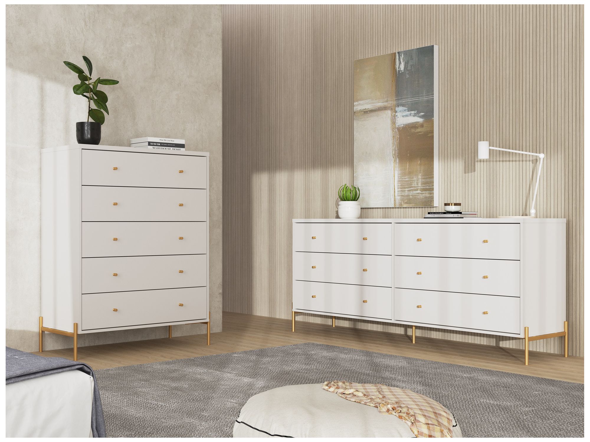 Jasper Full Extension Tall Dresser and Double Wide Dresser Set of 2 in Off