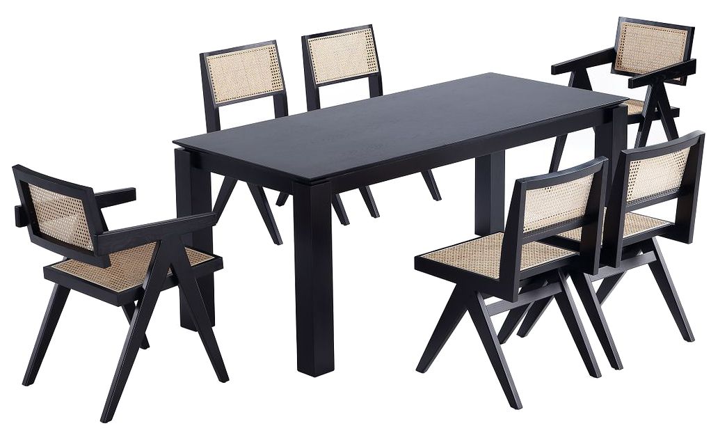 7pc Rockaway 70.86 Dining Set in Black with 6 Hamlet Side and Arm Chairs