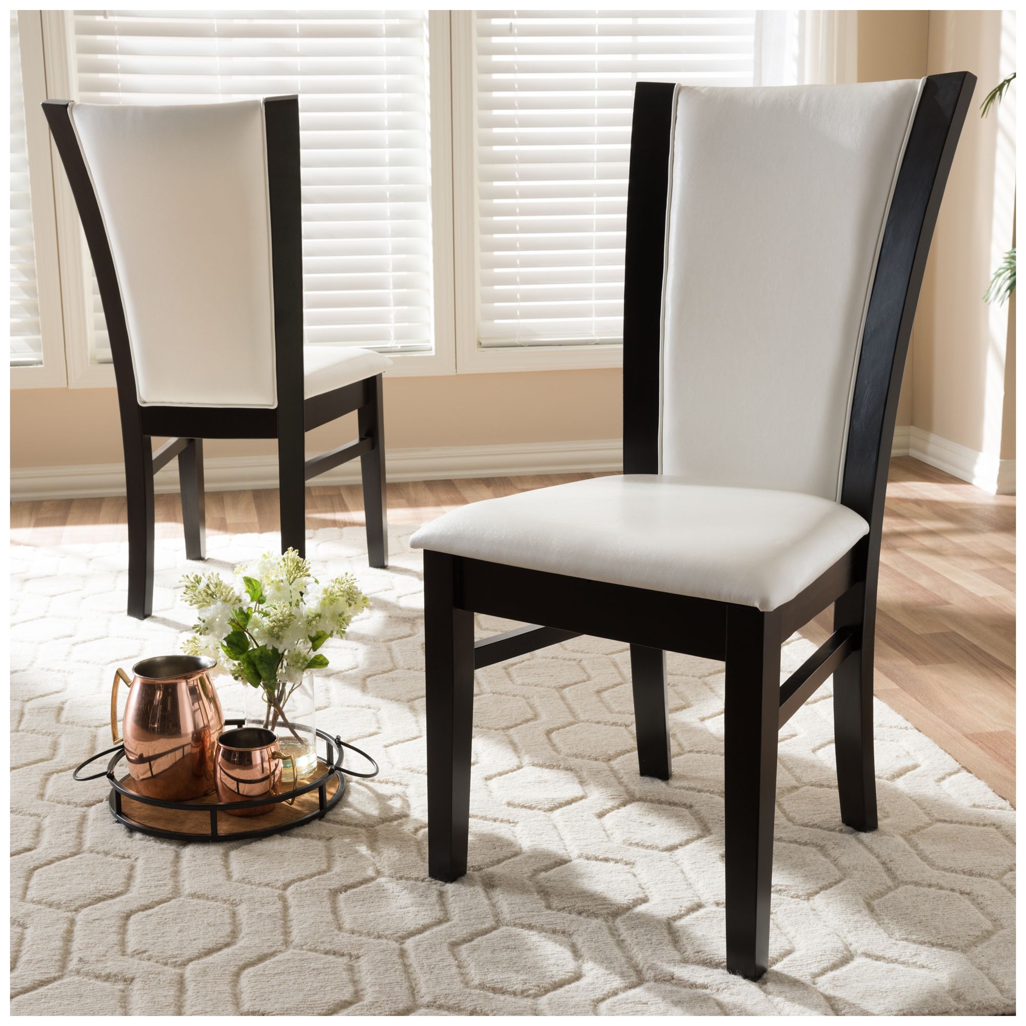 Set of 2 Baxton Studio Adley White Faux Leather Dining Chairs