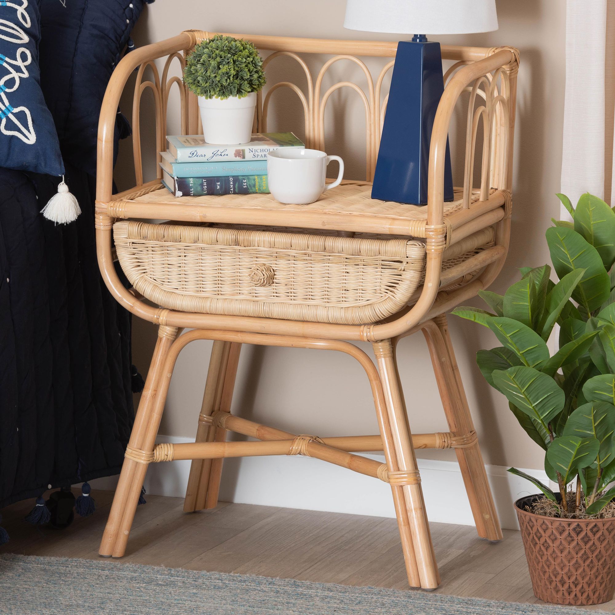 Panchali 23 1/2"W Natural Brown Rattan 1-Drawer Nightstand