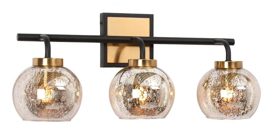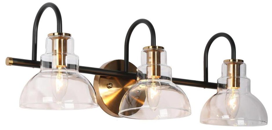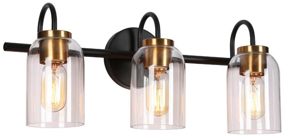 3-Light Black and Gold Bathroom Vanity Light
