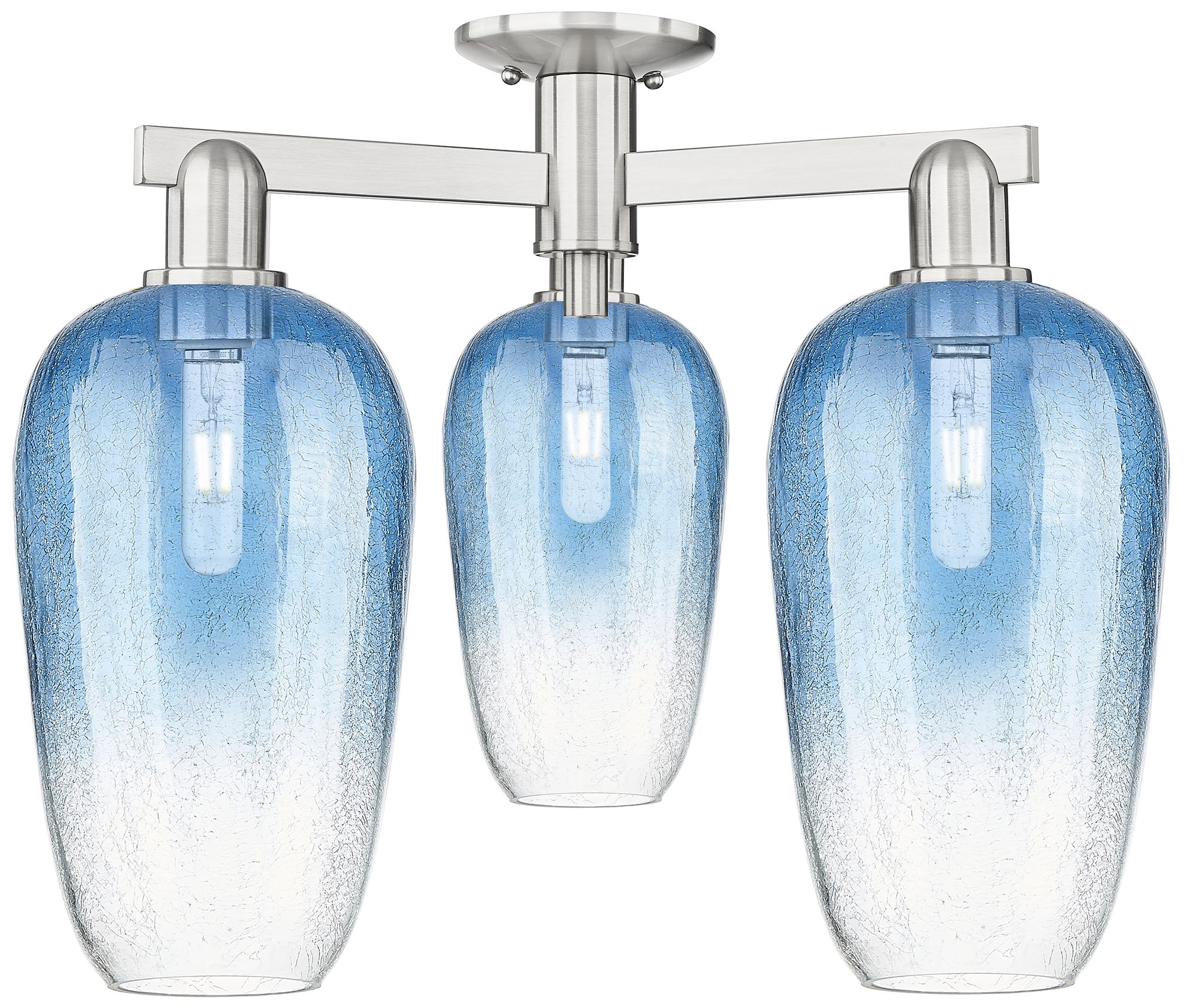 Brookhaven Flute 25"W 3 Light Satin Nickel Semi-Flush w/ Sapphire Shade