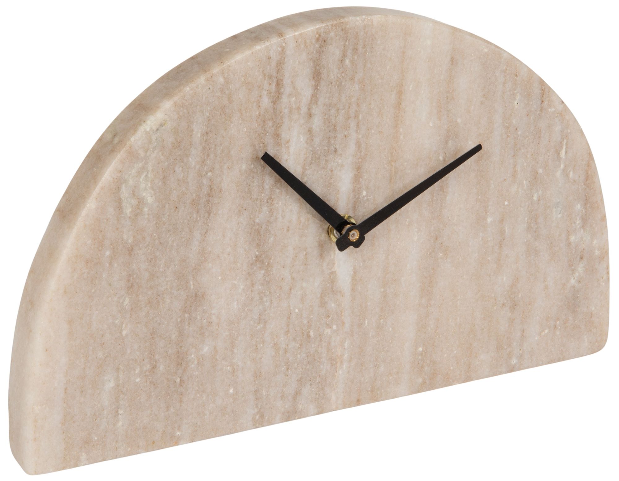Decorative Half Moon Marble Mantel Clock, Beige and Black