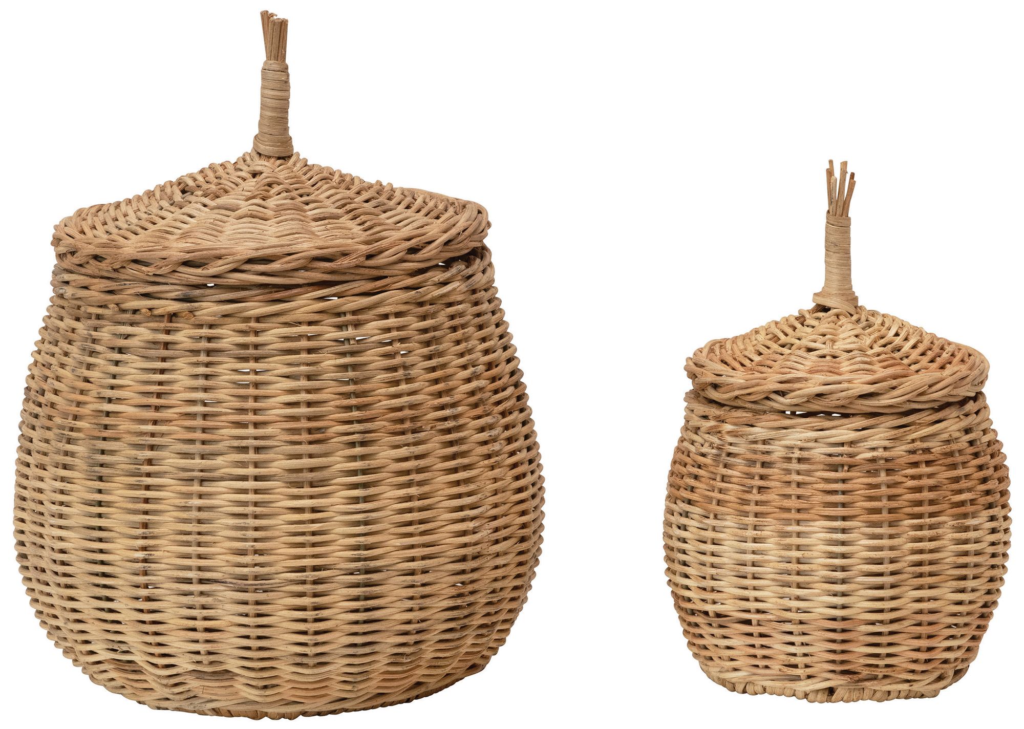 Hand-Woven Wicker Basket Storage with Lids, Natural, Set of 2