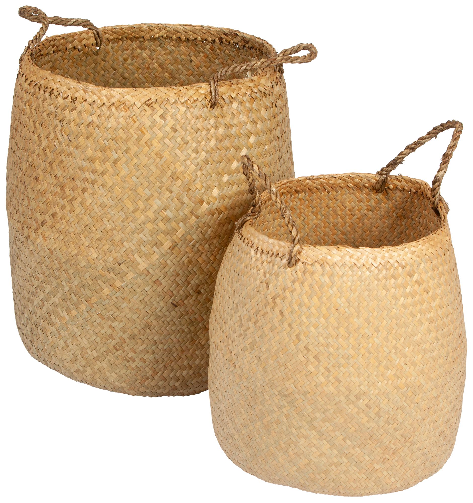 Round Seagrass Storage Baskets with Handles, Natural, Set of 2