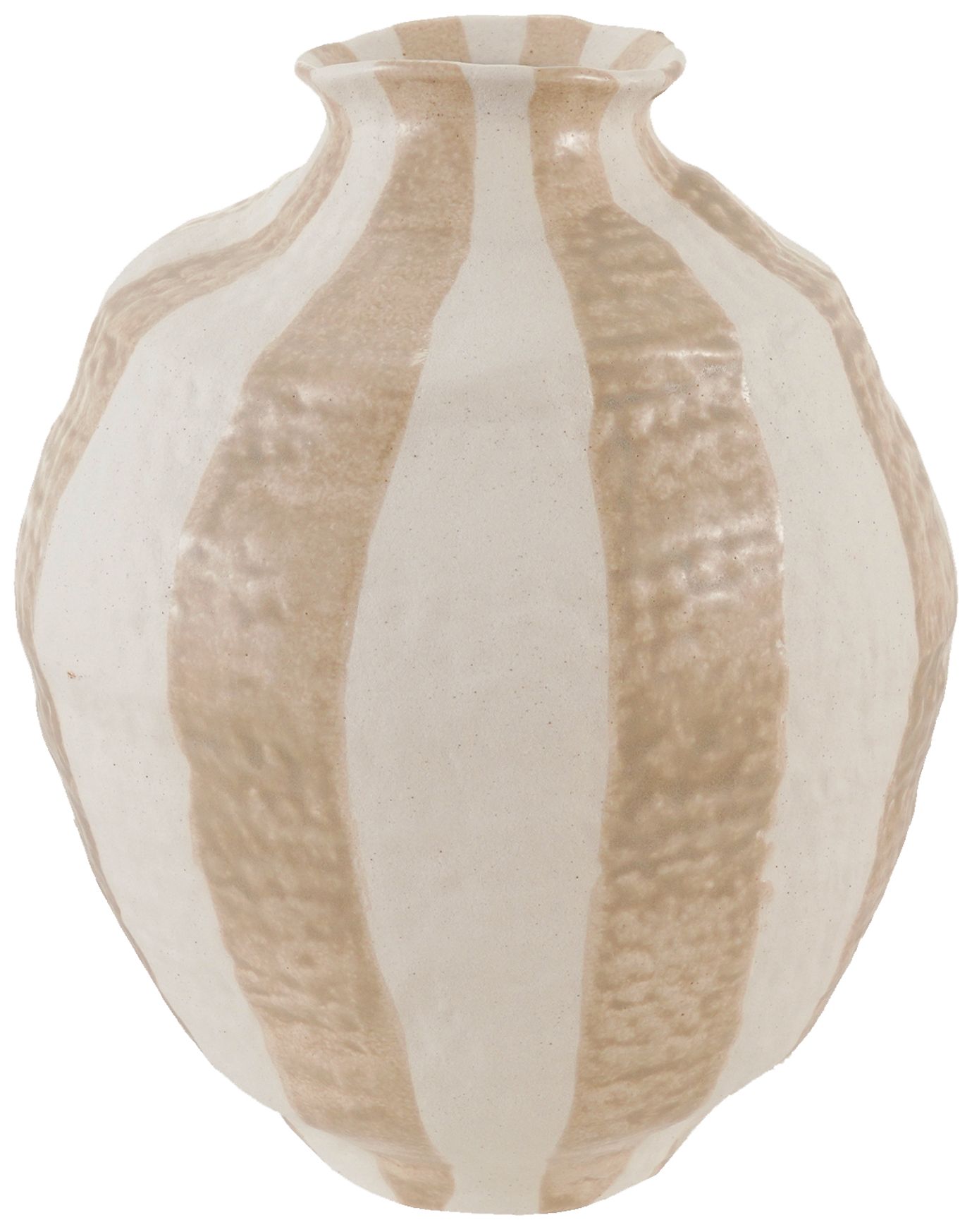 Round Stoneware Striped Dolomite Vase, Beige and White