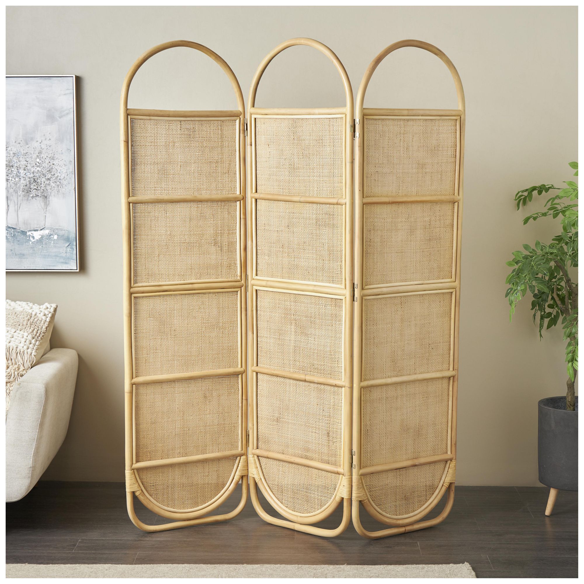 Light Brown Rattan Traditional Room Divider Screen, 51" x 17" x 71"