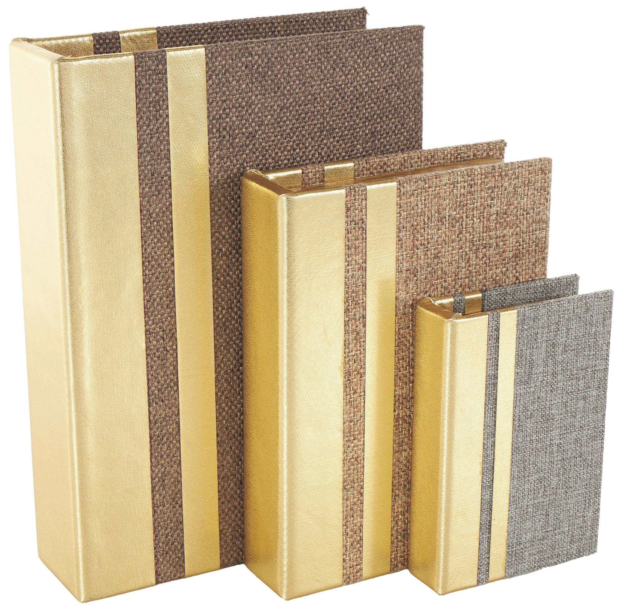 Brown Linen Faux Book Storage Decorative Box, Set of 3 12", 9", 6"H