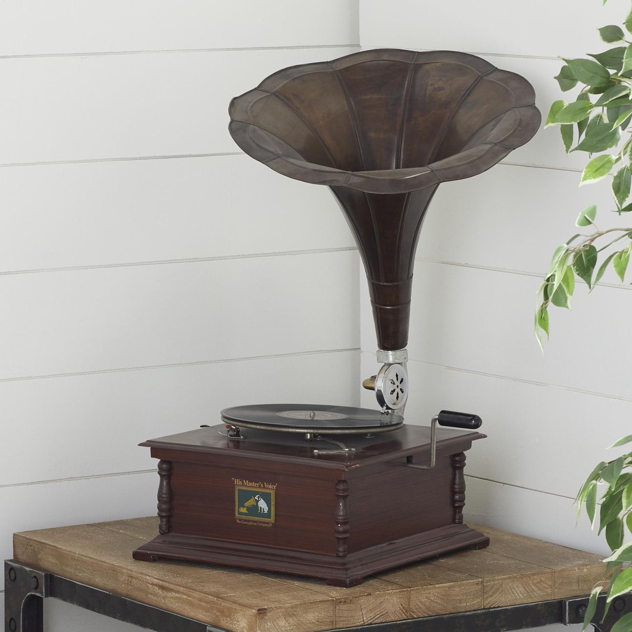 Brown Wood Vintage Gramophone, 19" x 17" x 27"