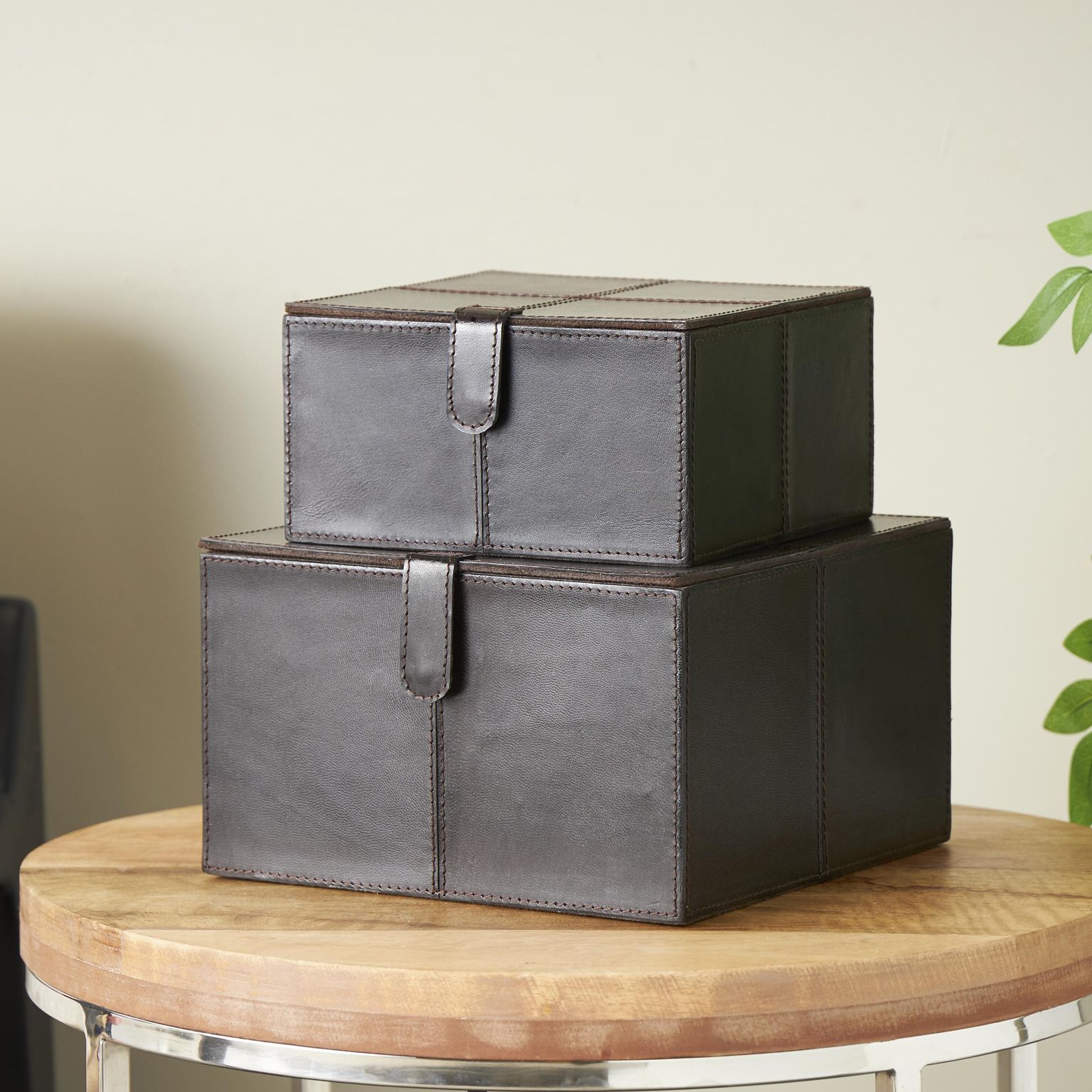 Dark Brown Leather Modern Box, S/2 10", 8"W